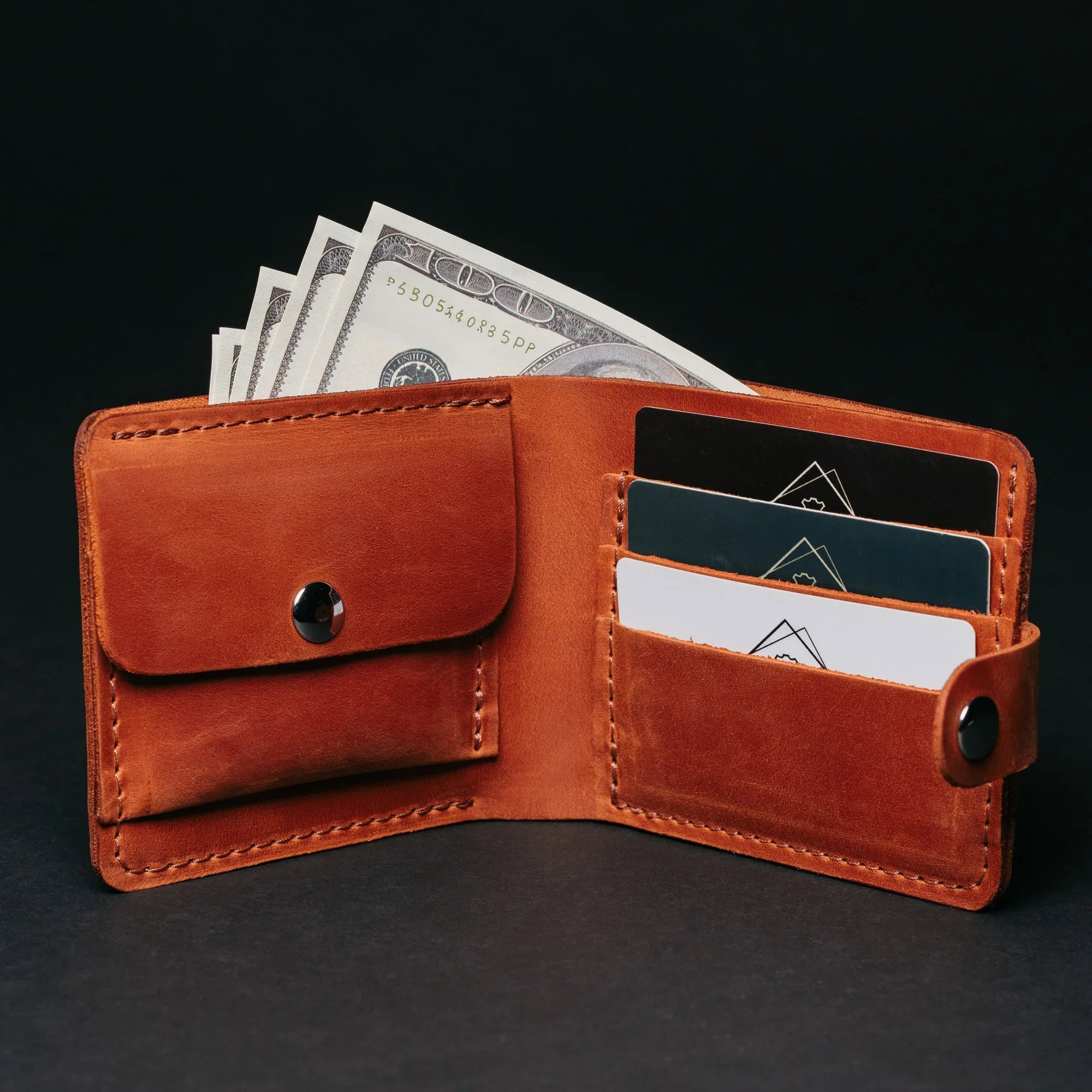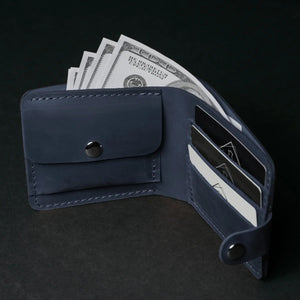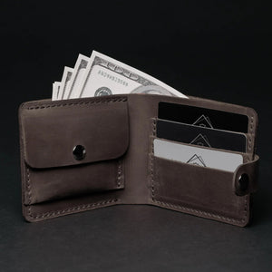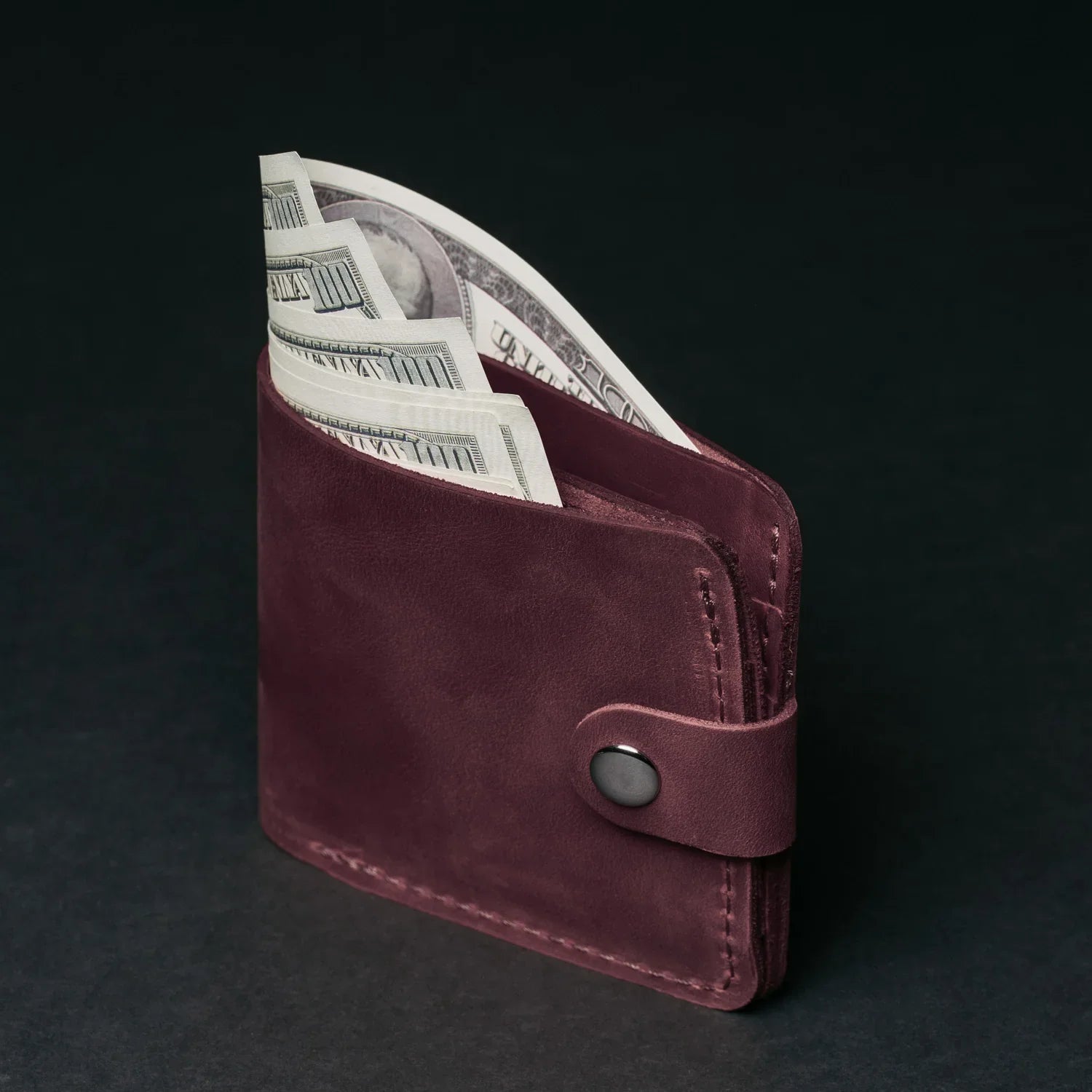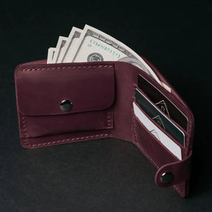 - Гаманець виготовлений з натуральної шкіри. Він має декілька варіацій. Перша варіація моделі – монетниця + 3 слоти під карти. Друга варіація – монетниця + 6 слотів під карти.