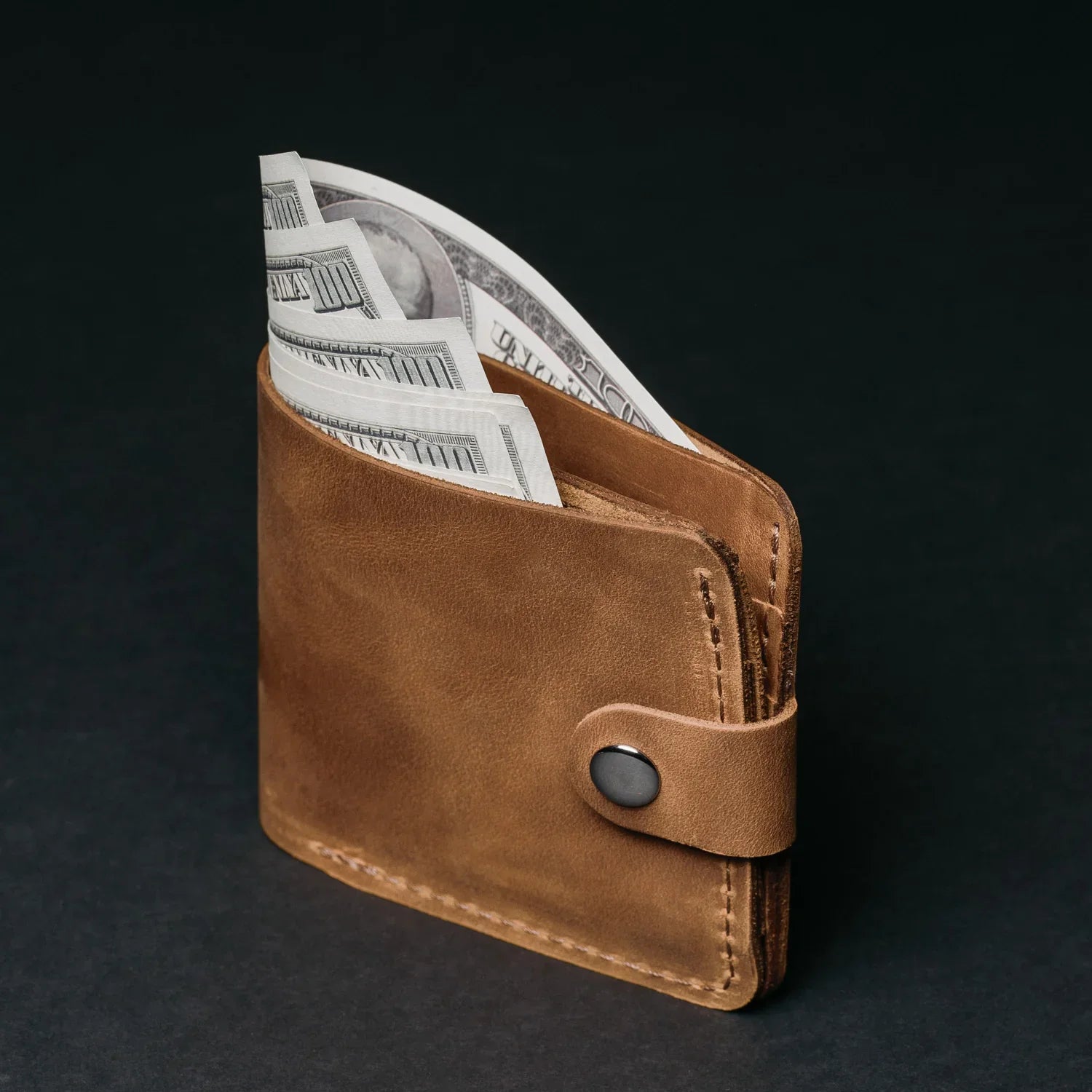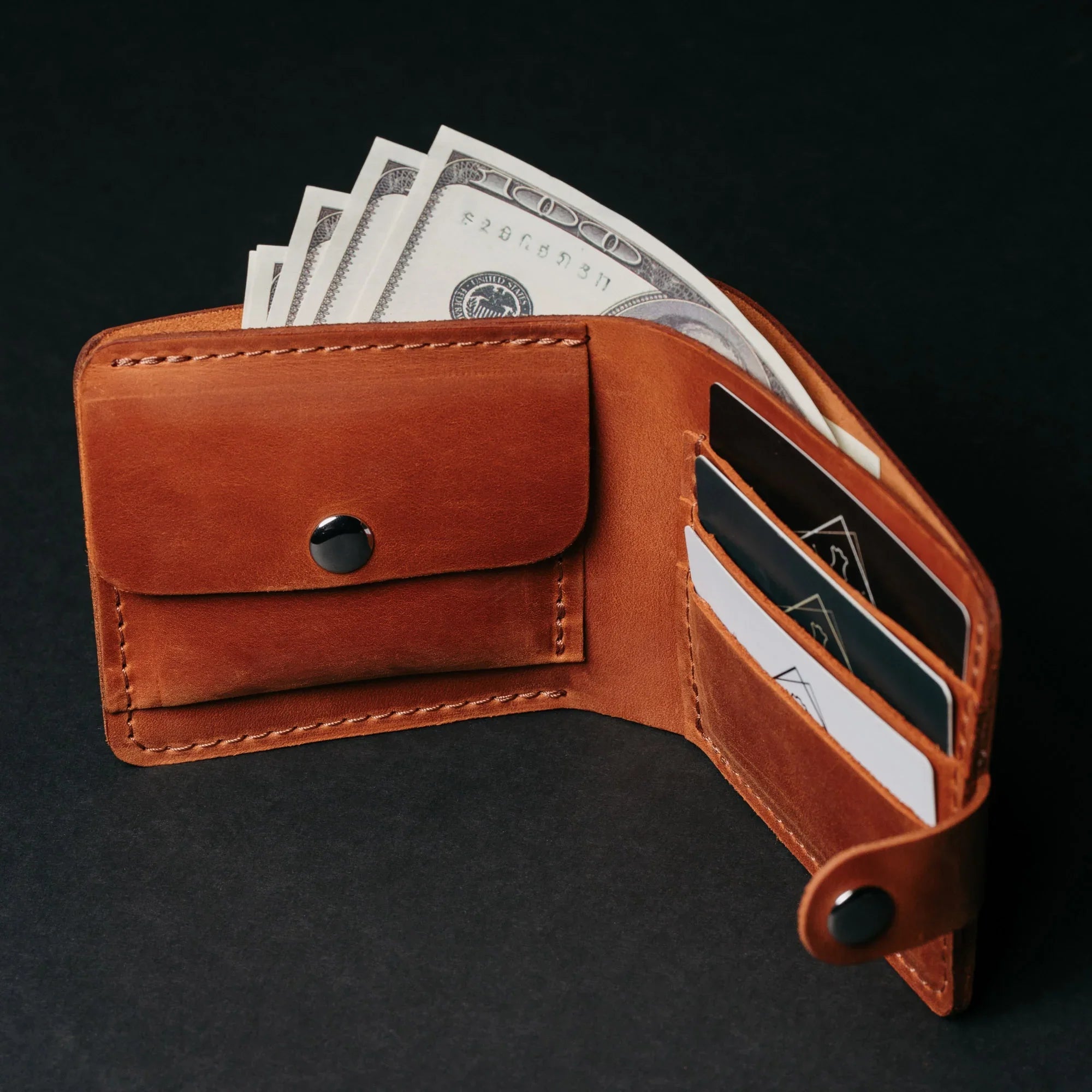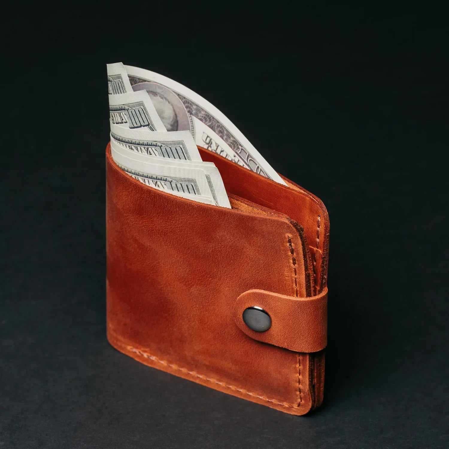 - Гаманець виготовлений з натуральної шкіри. Він має декілька варіацій. Перша варіація моделі – монетниця + 3 слоти під карти. Друга варіація – монетниця + 6 слотів під карти.
