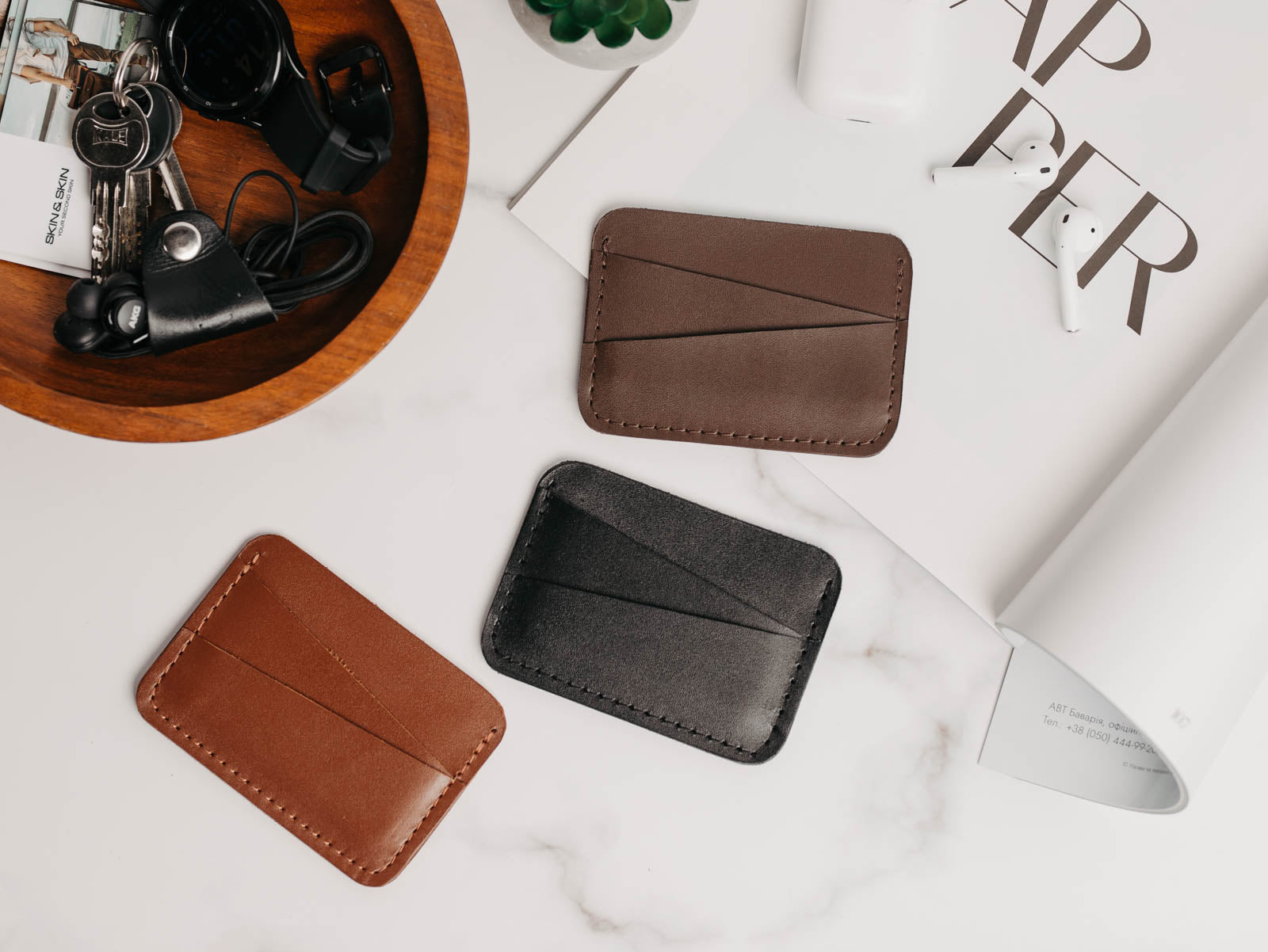 Ви можете купити шкіряні кардхолдери декількох видів і зберігати в них різні набори карт: дисконтні, банківські, кредитні. Кардхолдер може служити для найнеобхіднішого – паспорта (ID картки), прав, банківської картки, яку використовуєте найчастіше.