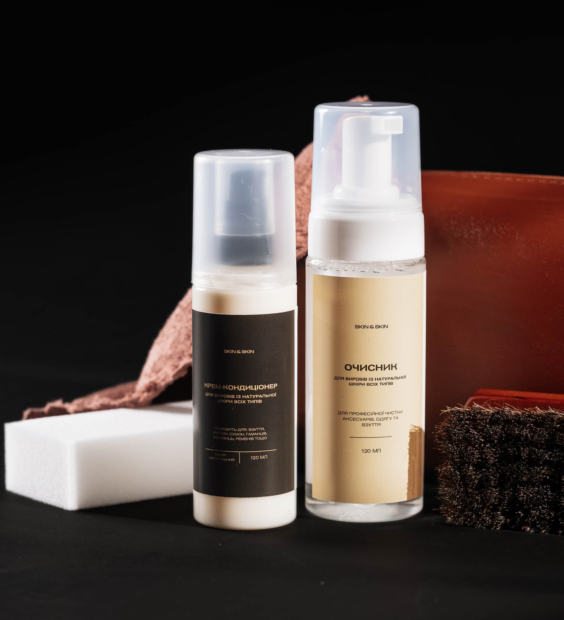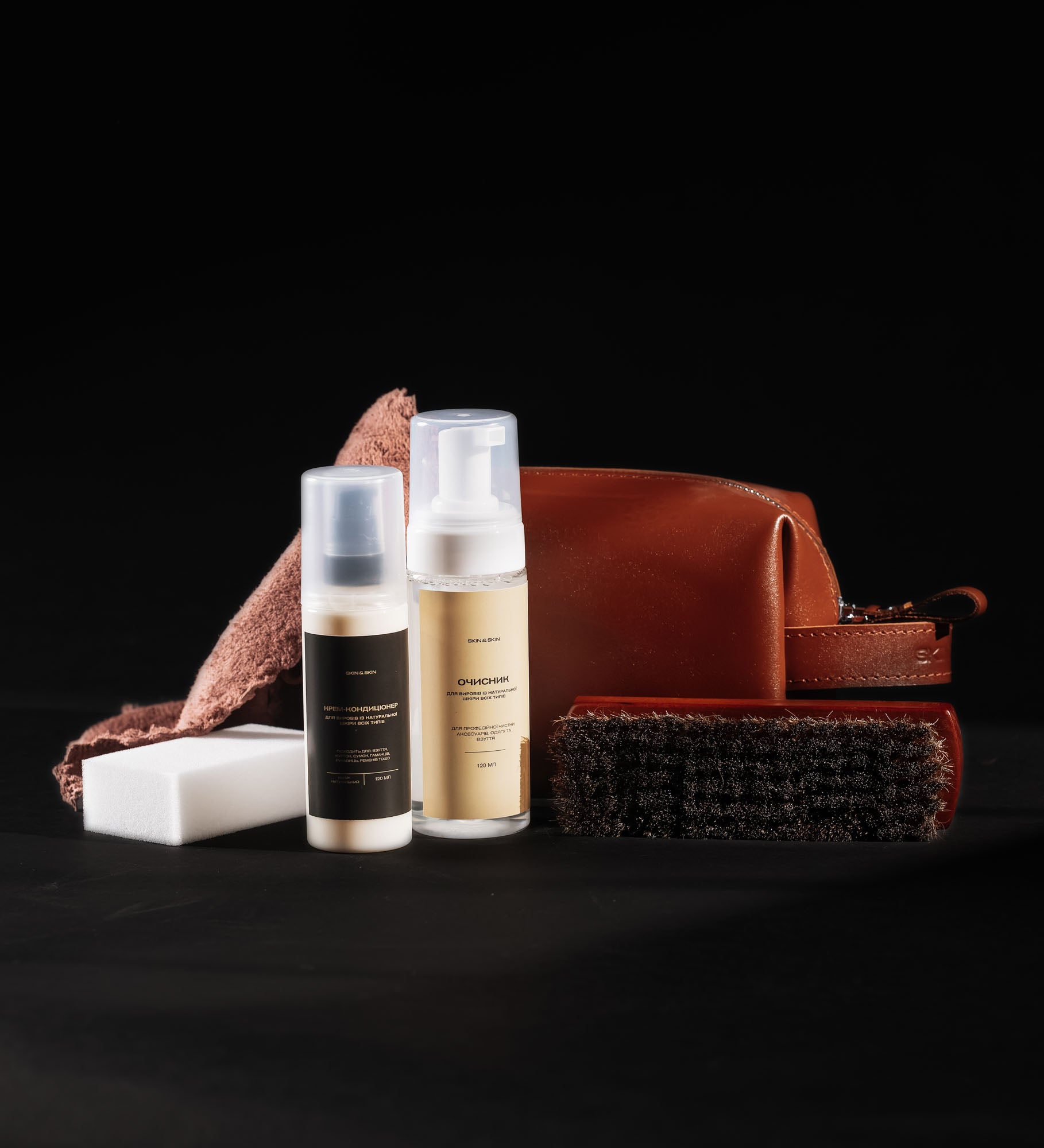 Набір засобів, які допоможуть дбати про вироби з натуральної шкіри та зберігати їх естетичний вигляд упродовж років.