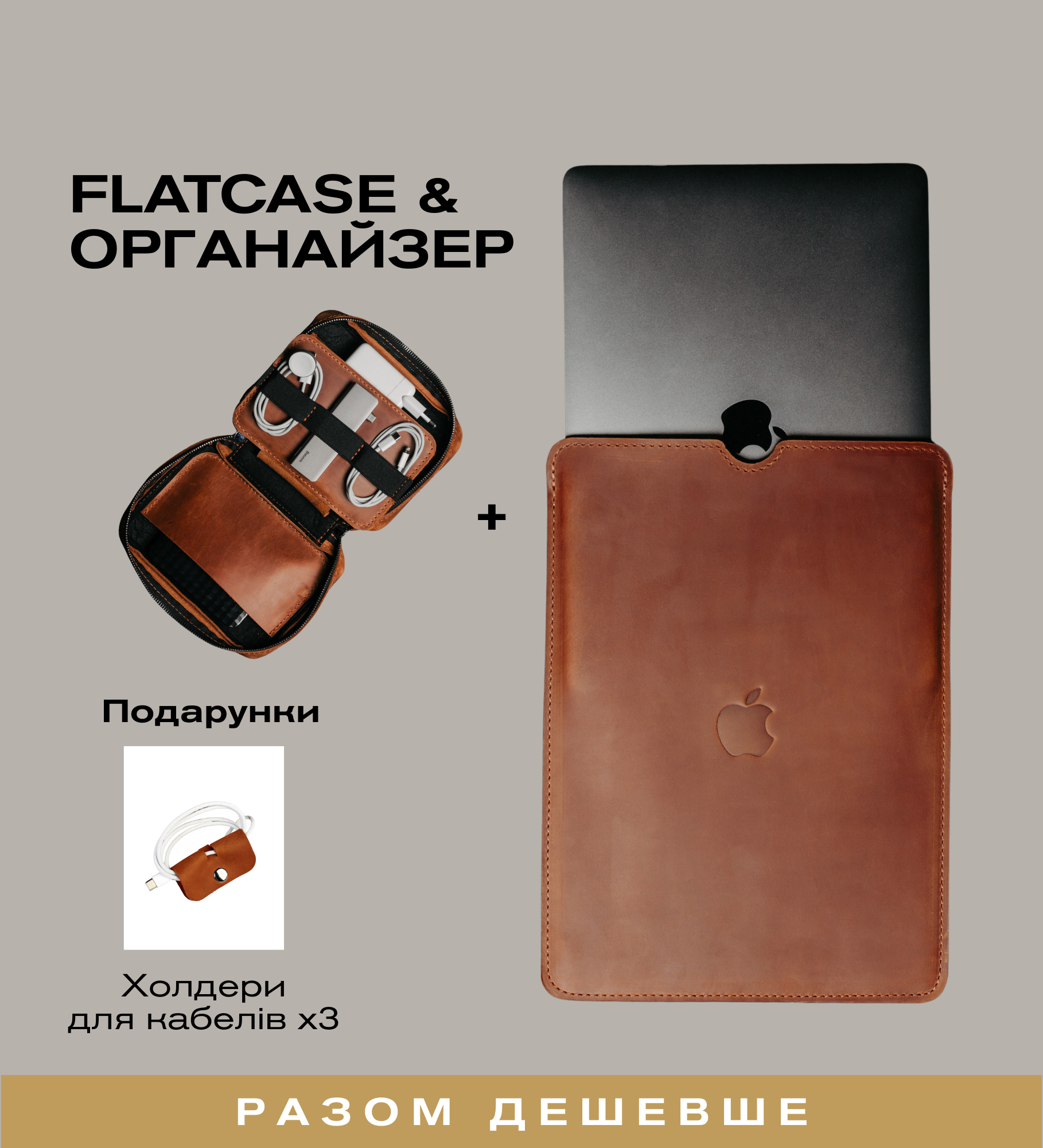 Набір: шкіряний чохол для ноутбука + органайзер для гаджетів