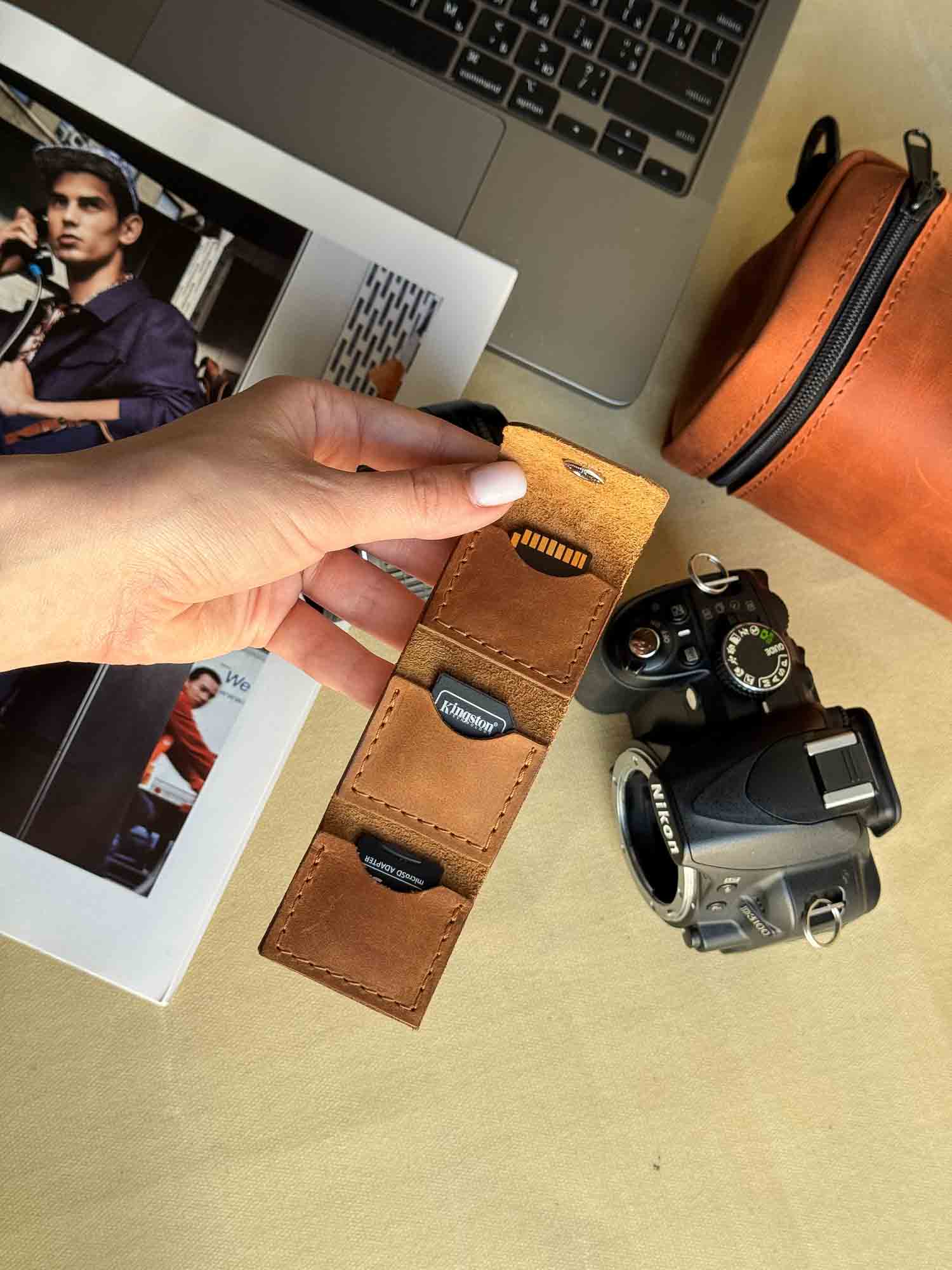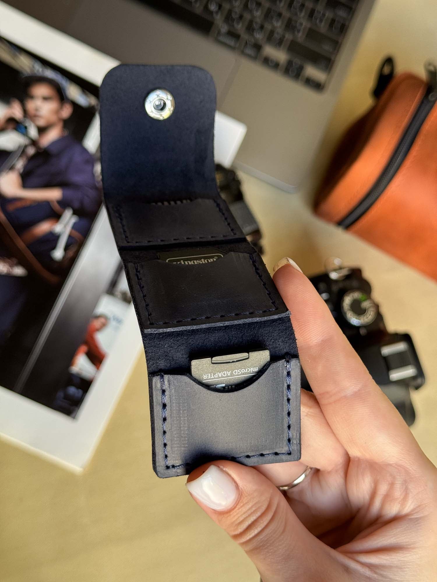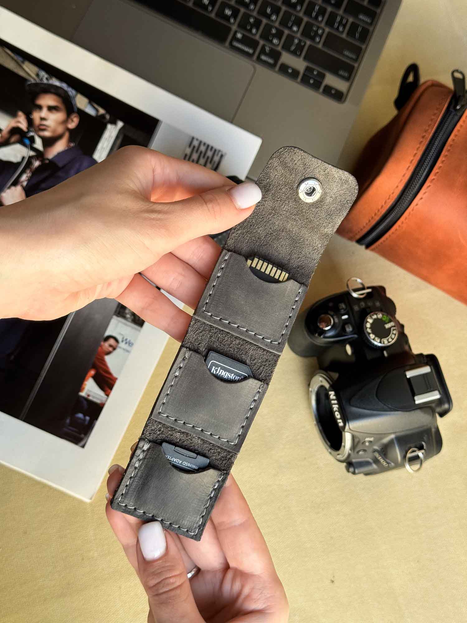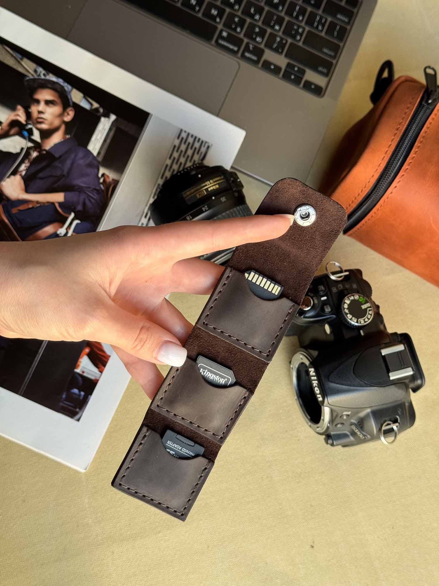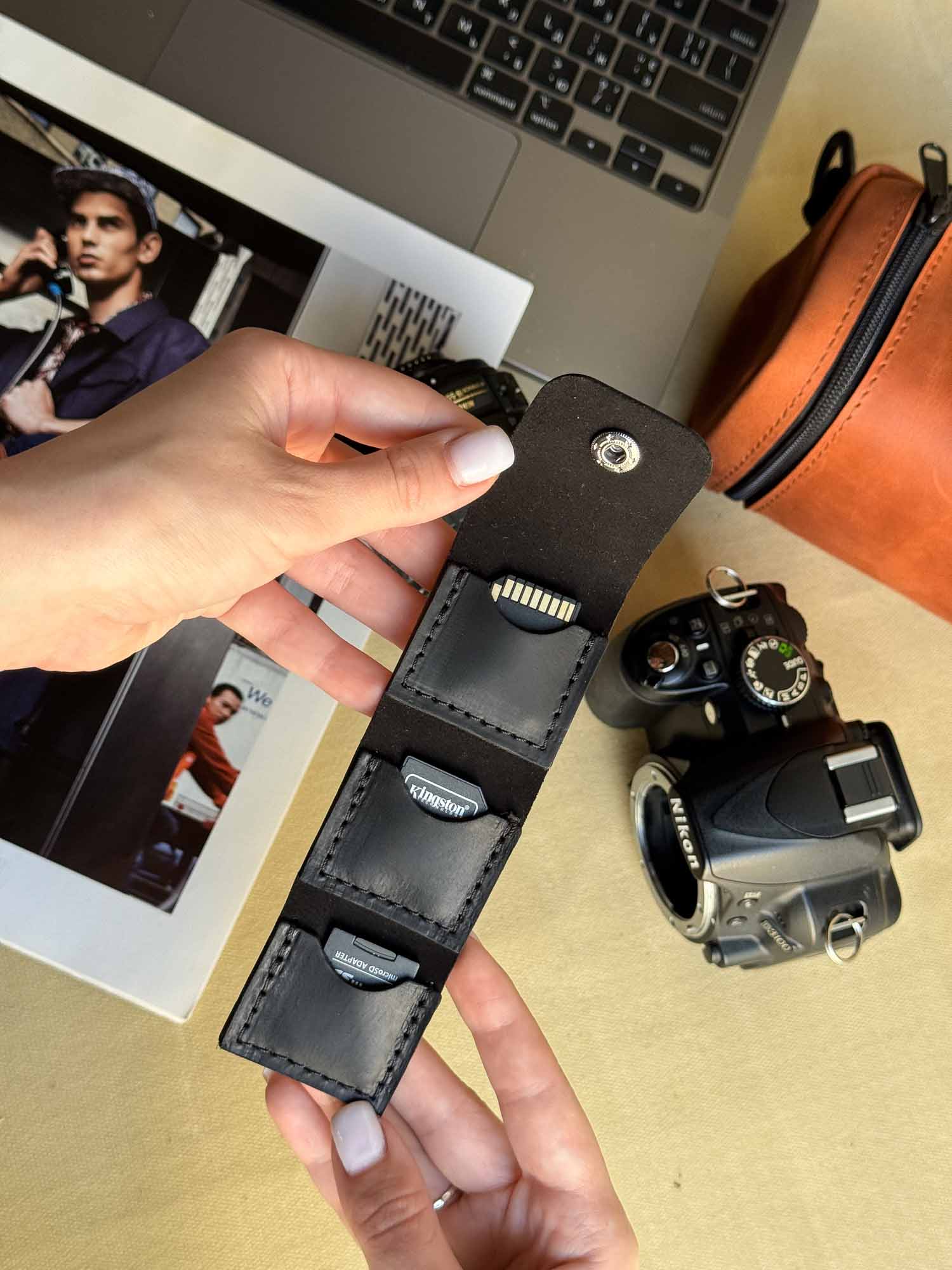 Забудьте про втрачений час на пошук карт пам’яті. Цей надійний аксесуар допоможе впорядкувати все необхідне та зробить робочий процес комфортним. Компактний шкіряний футляр створений для фотографів і творців, які цінують ефективність та порядок. Тримайте свої карти саме там, де вони потрібні, – і ніщо не відволікатиме від творчості.