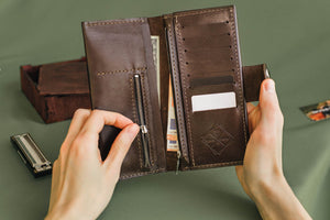 Преміальні аксесуари зі шкіри, виготовлені вручну у власній майстерні, створені для довговічності. Ми проектуємо їх так, щоб вони не втрачали актуальності з часом, допомагали зменшувати надлишкове споживання та несли особистий характер у кожній деталі.