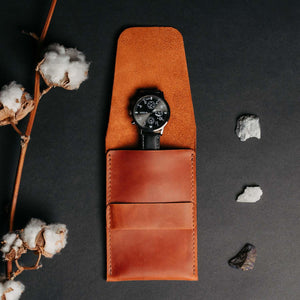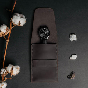 Зберігайте свої годинники в безпеці й порядку завдяки футляру ручної роботи з натуральної шкіри Crazy Horse. Цей вид шкіри відомий вощеним покриттям і природним вінтажним ефектом, який з часом набуває благородної патини. Футляр підходить для зберігання одного, двох або трьох годинників і забезпечує зручний захист як удома, так і в дорозі.