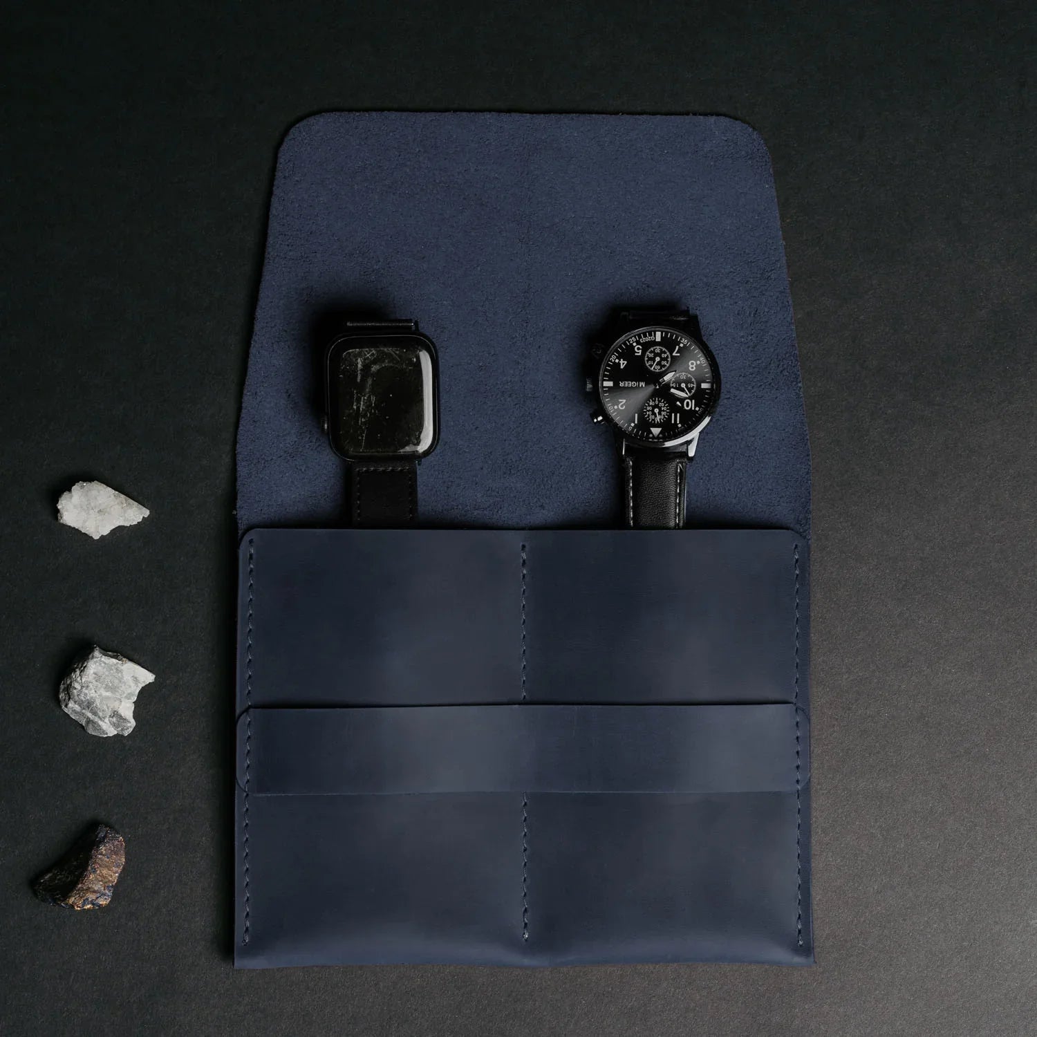 Зберігайте свої годинники в безпеці й порядку завдяки футляру ручної роботи з натуральної шкіри Crazy Horse. Цей вид шкіри відомий вощеним покриттям і природним вінтажним ефектом, який з часом набуває благородної патини. Футляр підходить для зберігання одного, двох або трьох годинників і забезпечує зручний захист як удома, так і в дорозі.