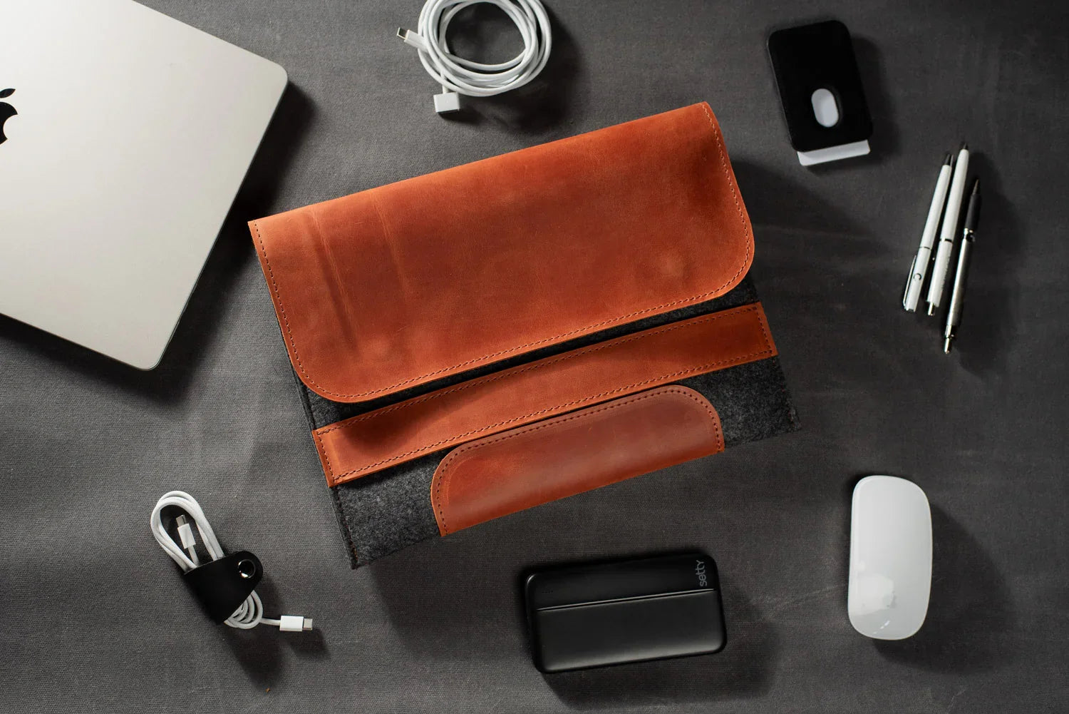 Забезпечте своєму MacBook або iPad гідний захист із цим чохлом-клапаном, виготовленим вручну з щільного вовняного фетру та воскової шкіри Crazy Horse. Винтажна фактура та ефект “pull-up” надають кожному виробу унікального характеру, який розкривається з часом – роблячи його не лише практичним, а й особистим аксесуаром.