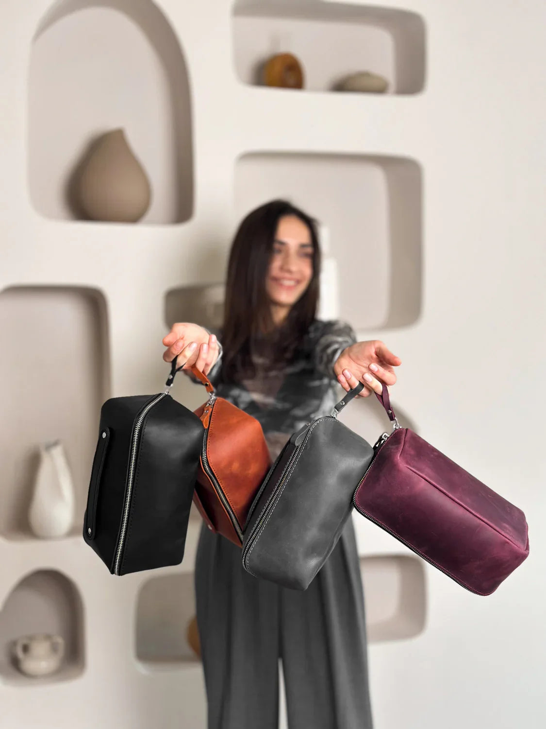 Зверніть увагу: кожна косметичка має унікальний відтінок і фактуру через природну обробку шкіри Crazy Horse. Колір може дещо відрізнятися залежно від налаштувань екрана.