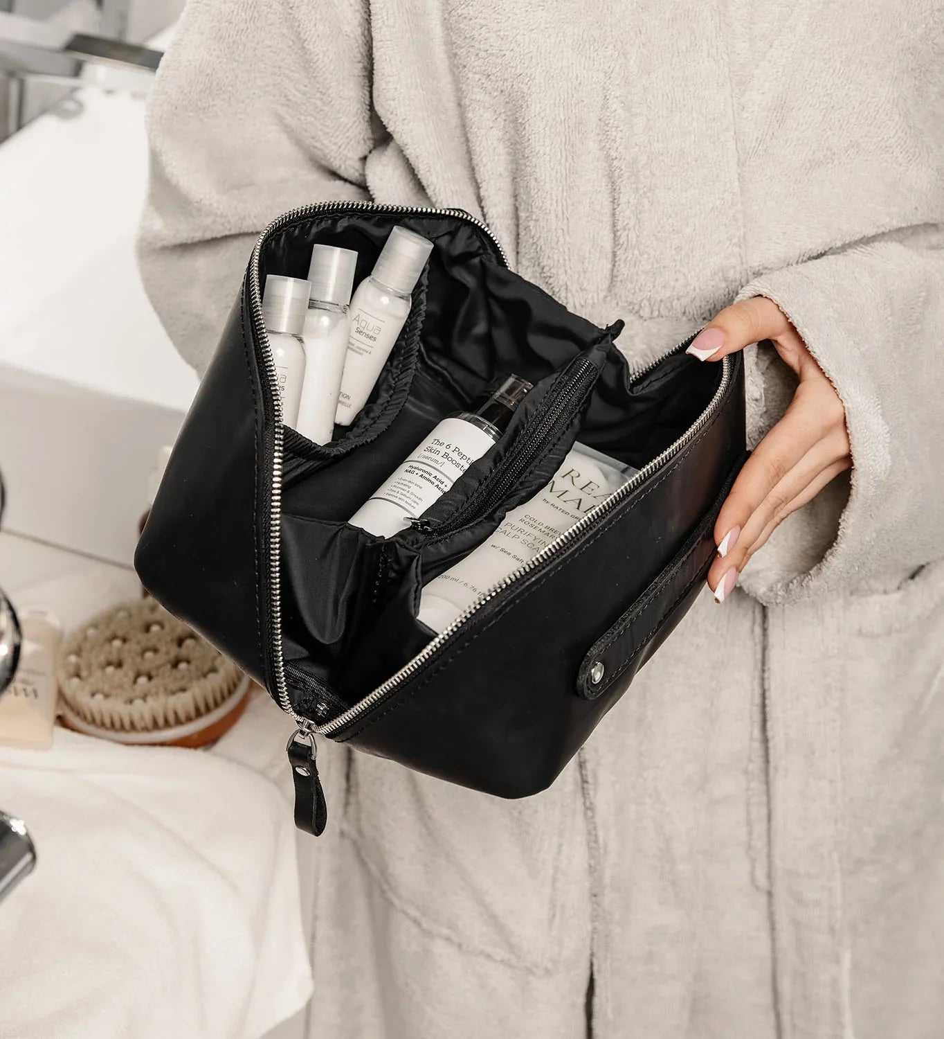 Fullgrain Leather Cosmetic Bag - BeautyBox | Matte Black - Skin and Skin