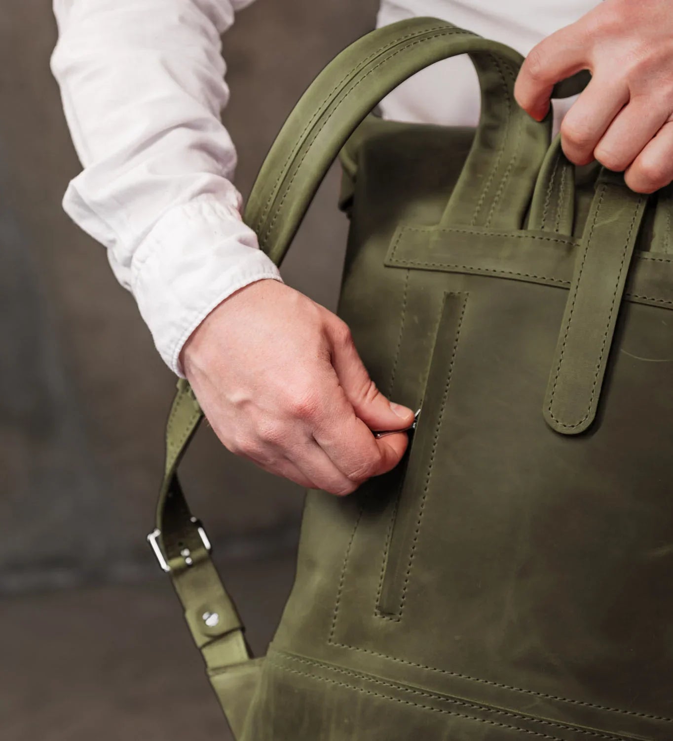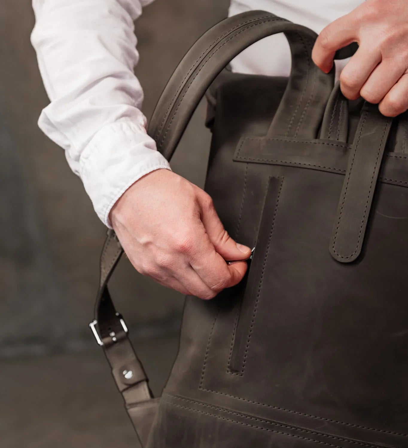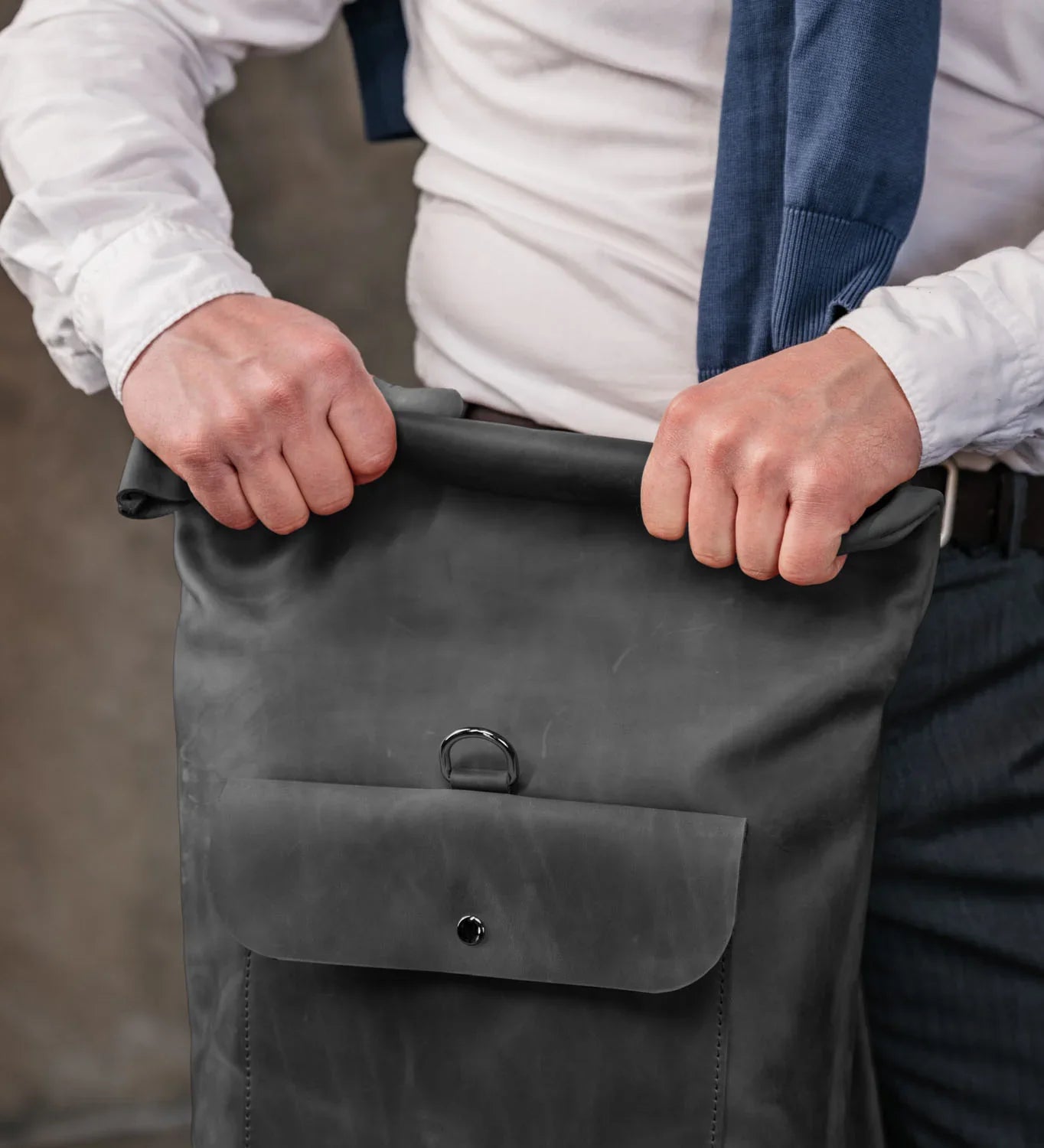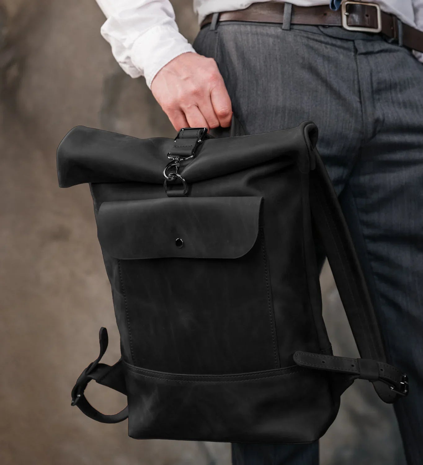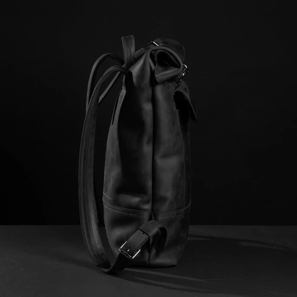 Матовий шкіряний наплічник RollTop з регульованим обʼємом