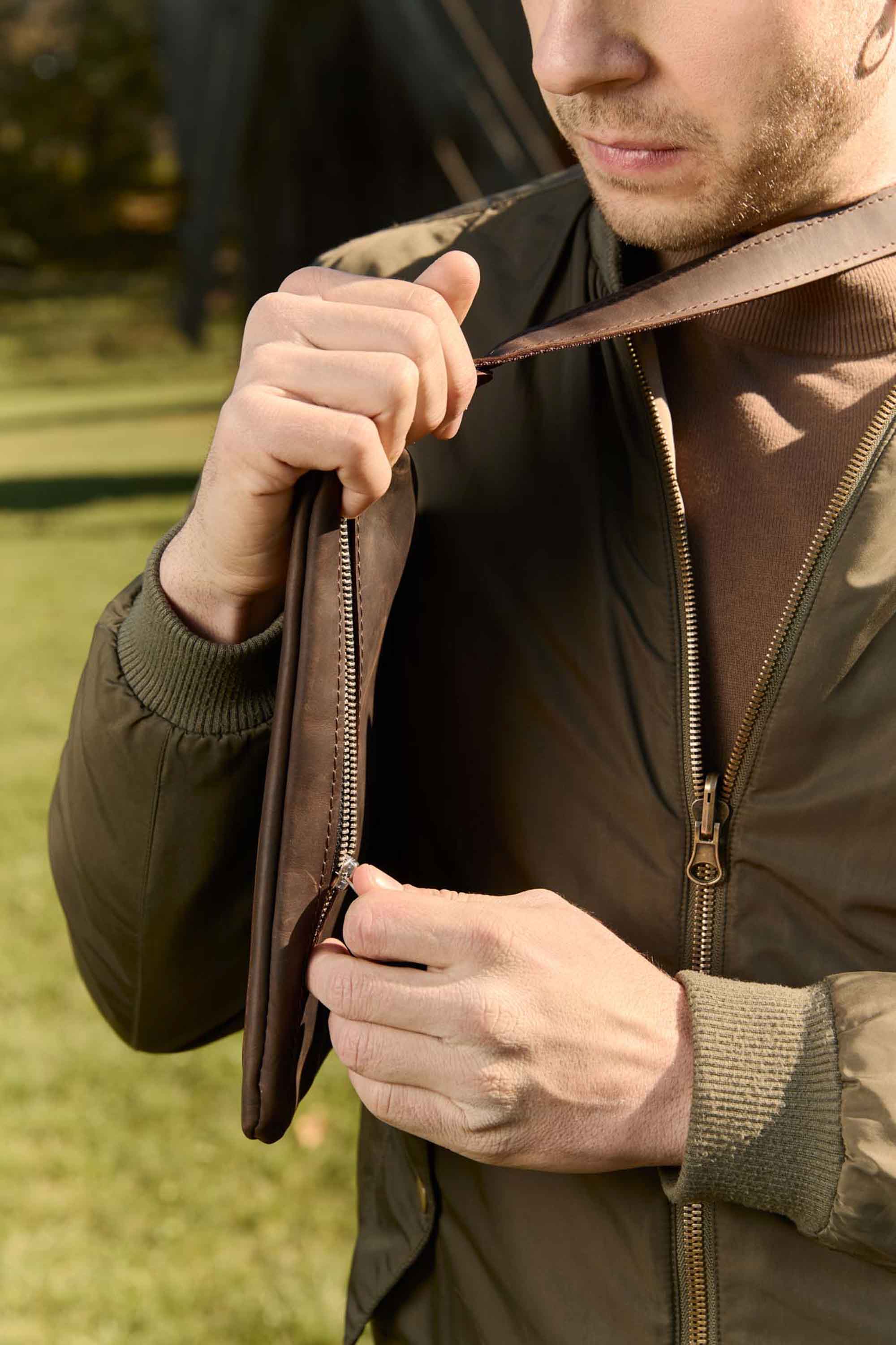Якщо ви з тих, хто любить мати все при собі, але не носити при тому речей на пів життя – Hidden саме ваш тип: плаский, зручний, вінтажний. Виготовили його з витривалої шкіри Crazy Horse з матовим вощеним покриттям. Кожен слід доторку та подряпина на ній перетворюється на спогад. І чим більше спогадів, тим багатша стає історія виробу. Тож з кожним днем Hidden виглядатиме все цікавіше.