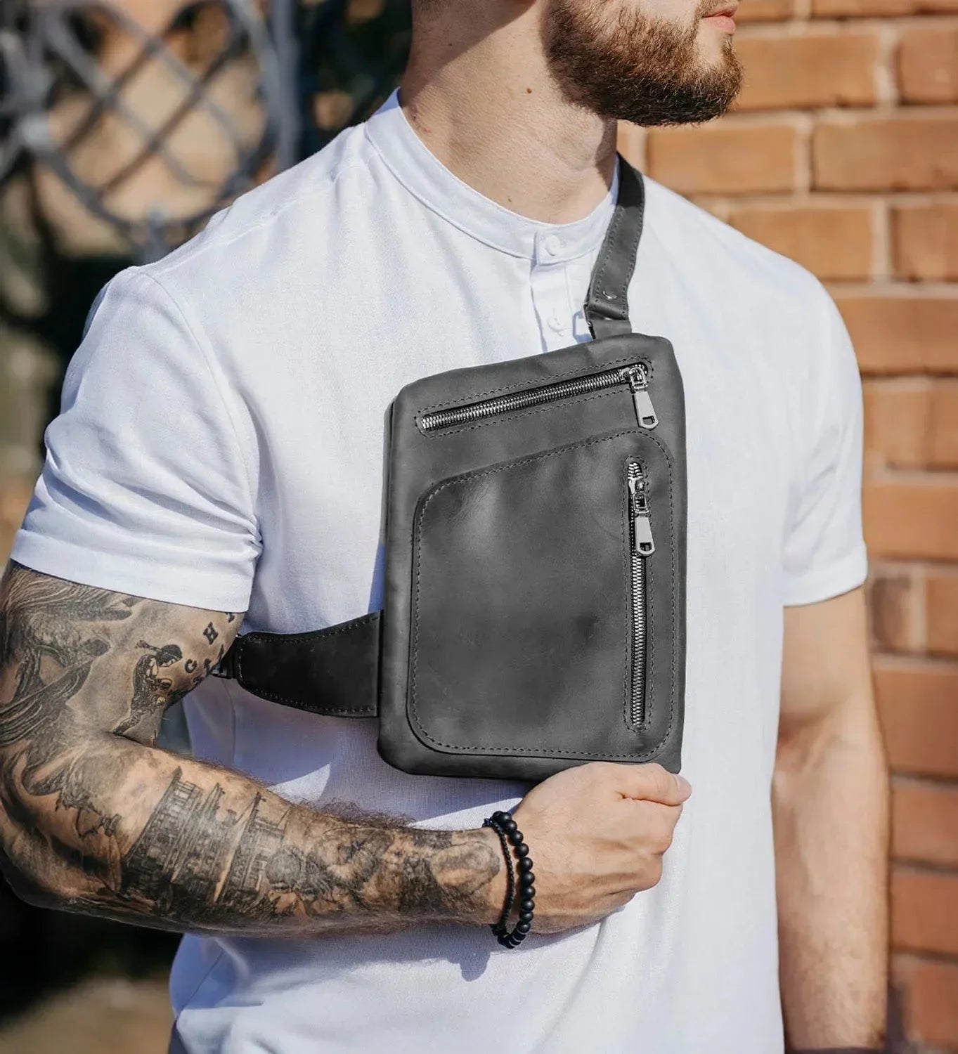 - Сезон не має значення. З обʼємним пальтом, худі чи тонкою футболкою – цей шкіряний всидить однаково комфортно завдяки регульованому ременю. Улітку, взимку, в поїздках і як на щодень.