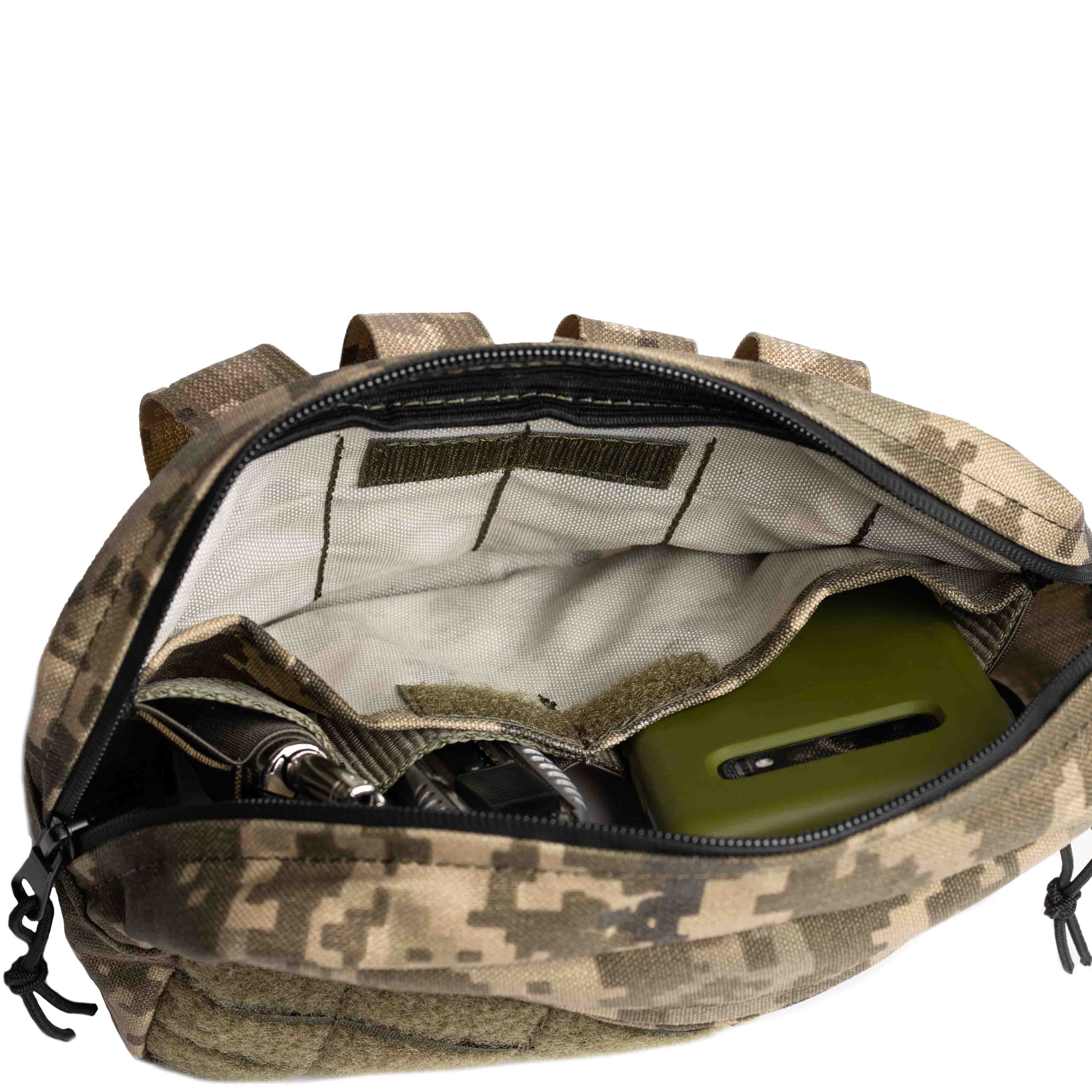 Утилітарний підсумок призначений для перенесення різноманітного малогабаритного спорядження розсипом, запасних акумуляторів до радіостанції, транспортування аптечки, ліхтарика, блокнота і т.д. Кріпиться на рюкзаки і жилети завдяки системі MOLLE.