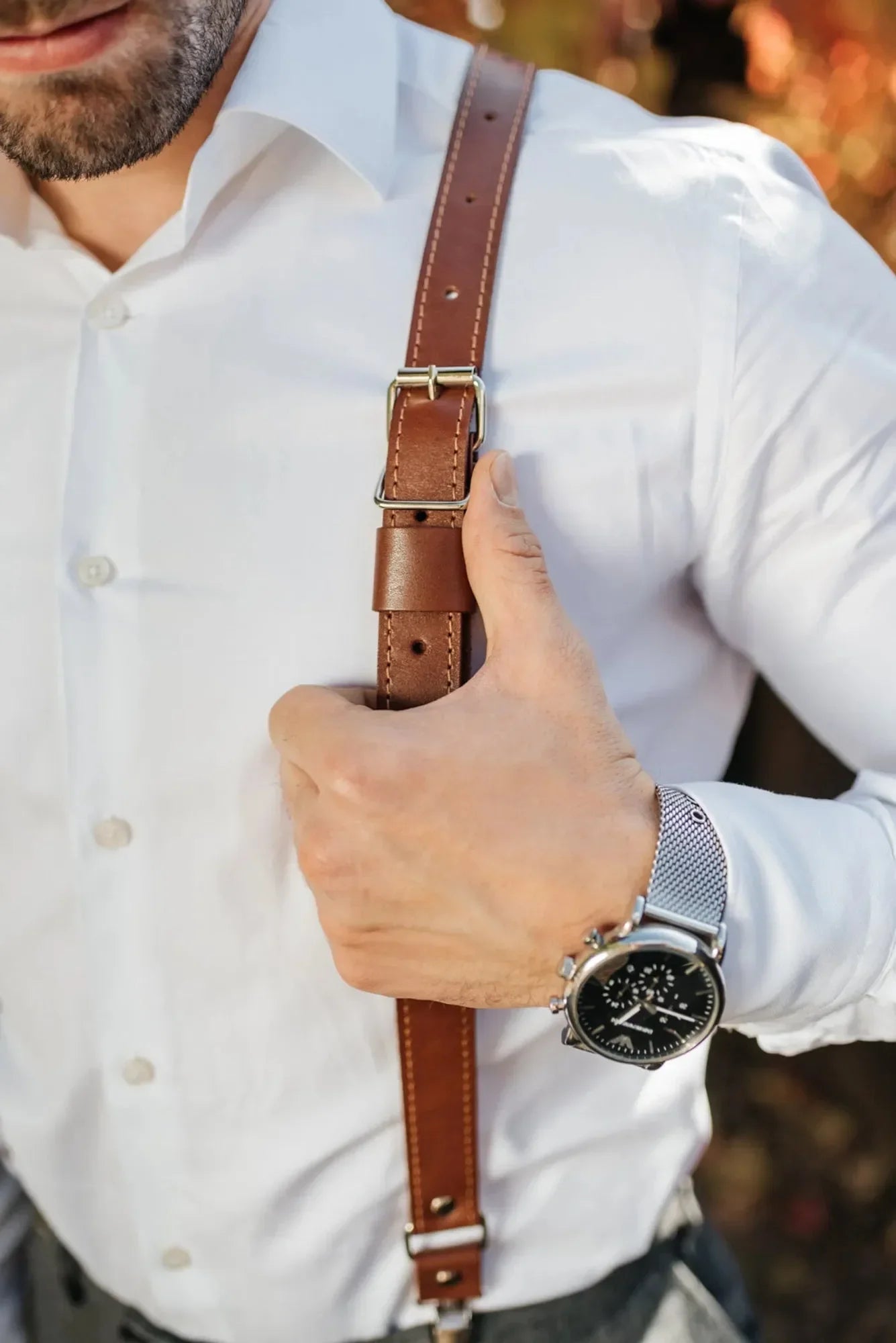 Підтяжки – стильна та незвичайна альтернатива традиційному ременю. Вони виготовлені з міцної та якісної натуральної шкіри, яка зробить ваш образ більш презентабельним. Шкіряні підтяжки стануть родзинкою вашого гардеробу. Лаконічні металеві елементи та пряжки гармонійно поєднуються зі шкірою. Аксесуар виглядатиме доречно в будь-якій обстановці. Він виділить вас із натовпу та допоможе створити галантний образ.