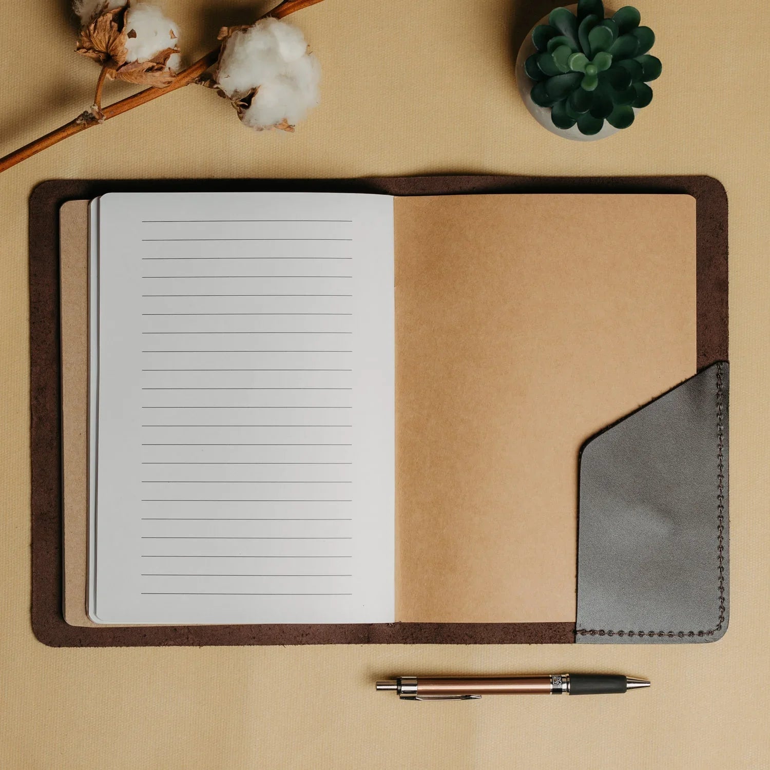 Підійде як подарунок для журналістів, студентів, письменників чи креативних людей. Обкладинка сумісна з блокнотами формату A6 та A5 і підходить для записів, щоденника, планера чи тревел-ноутбука. Можна додати індивідуальне тиснення – ініціали, логотип або короткий напис.