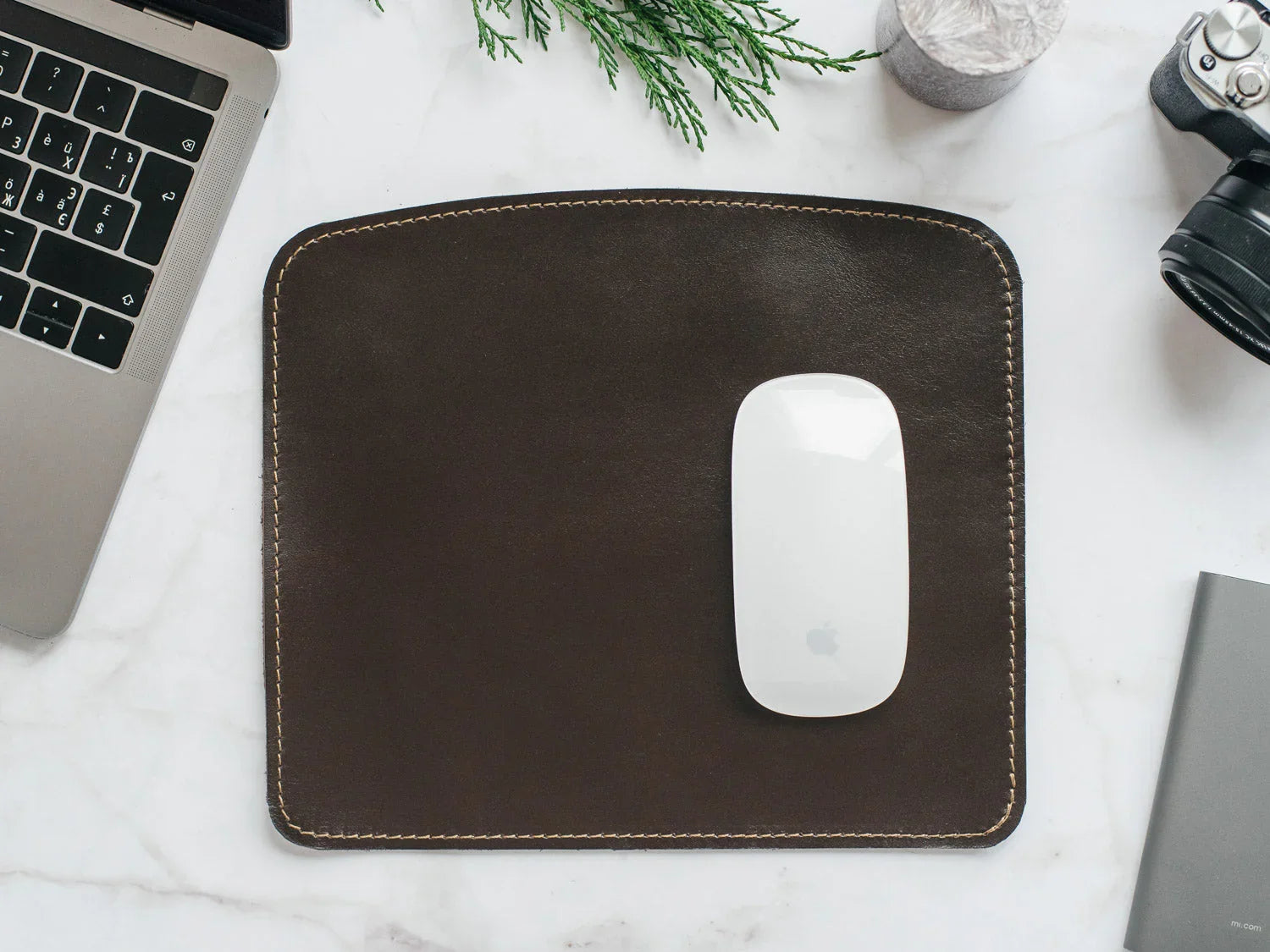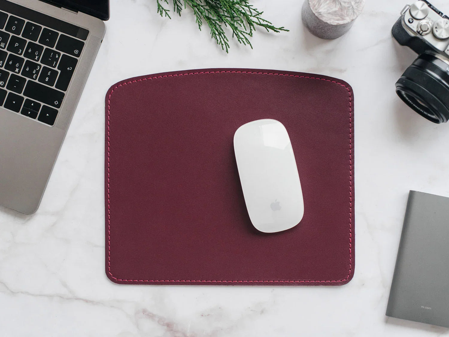 Якщо ви цінуєте практичність і любите темні, спокійні відтінки, вам чудово підійде килимок для мишки в чорному, коричневому, коньячному, сірому бордовому кольорі. Якщо ж ви хочете зробити яскравий акцент на робочому місці, зверніть увагу на виріб у рожевому або зеленому кольорі. Всі ці варіанти представлені в каталозі Skin & Skin.