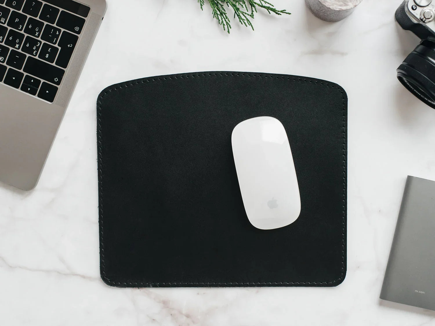 - Лицьова сторона аксесуара матова. По ній зручно ковзає мишка, але ковзає в міру. Ви з легкістю будете маневрувати нею. На килимку з натуральної шкіри зручно працювати, творити в Фотошопі, Ілюстраторі та інших програмах, шукати різноманітну інформацію, моніторити соціальні мережі та насолоджуватися улюбленими іграми.