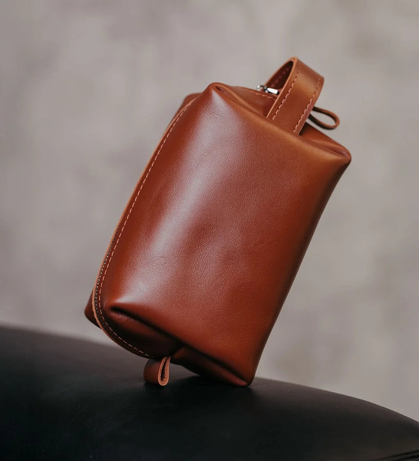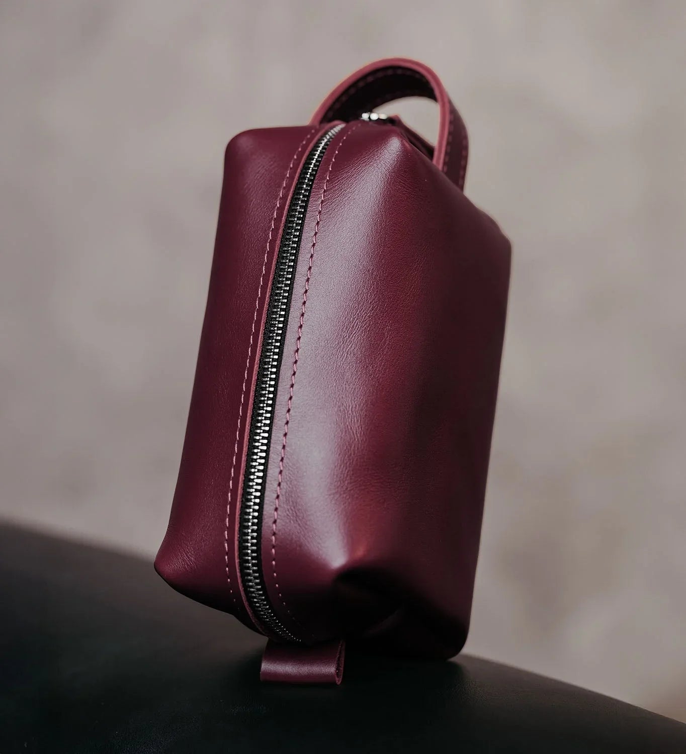 Виготовлена з натуральної шкіри класу Top Grain, вона надійно зберігає всі необхідні дрібниці – косметику, гребінець, манікюрні інструменти чи засоби для догляду. Міцна конструкція захищає вміст від протікань і пошкоджень у дорозі.