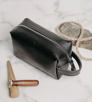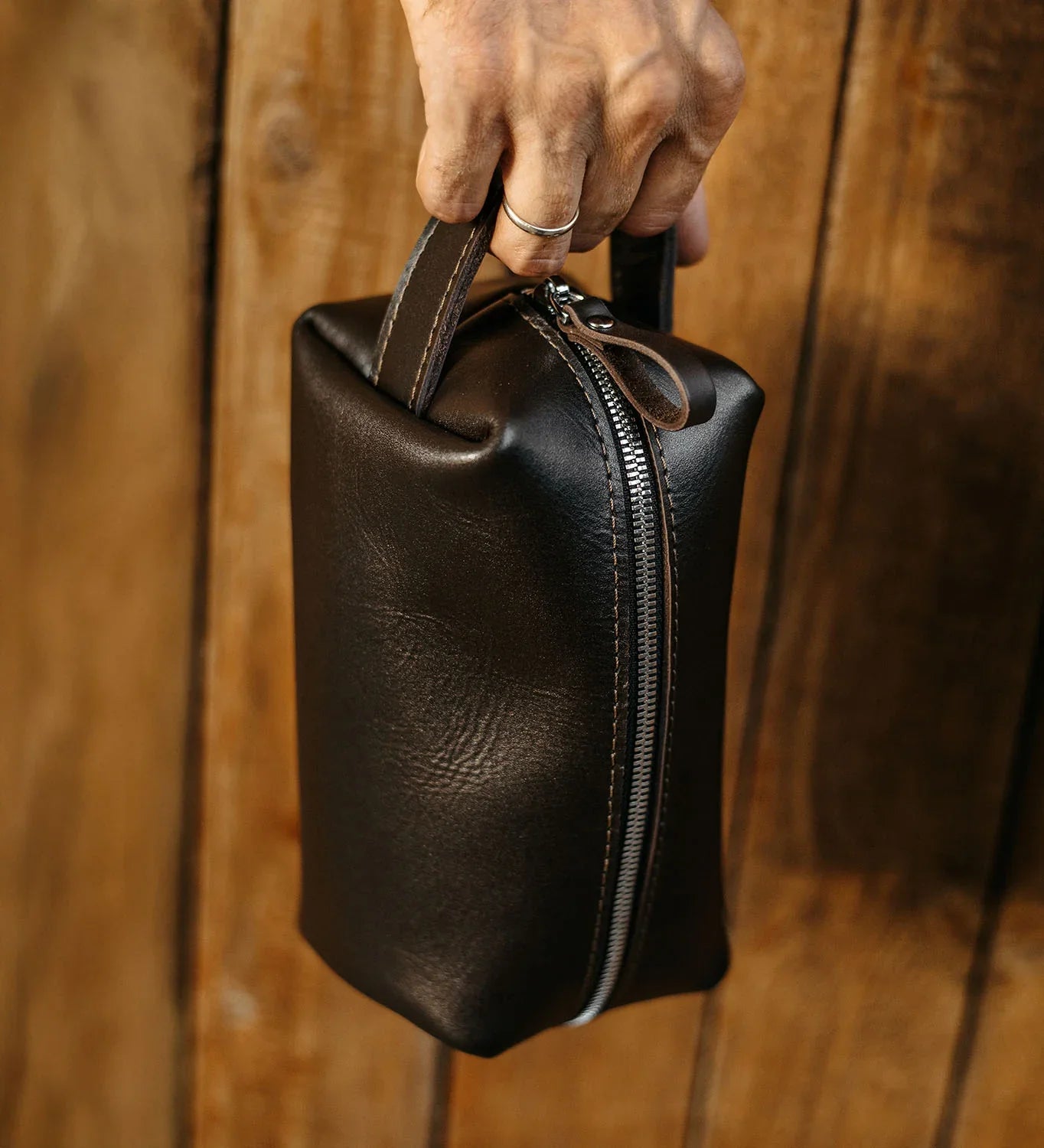 Leather Dopp kit | Smooth Black - Skin and Skin