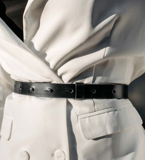 Ремінь універсальний у носінні – його можна застібати як на талії, так і на стегнах. Він пасує до будь-якого стилю – від повсякденного до більш вишуканого. Класична металева пряжка та чисті лінії роблять його базовою річчю, яка ніколи не втратить актуальності.