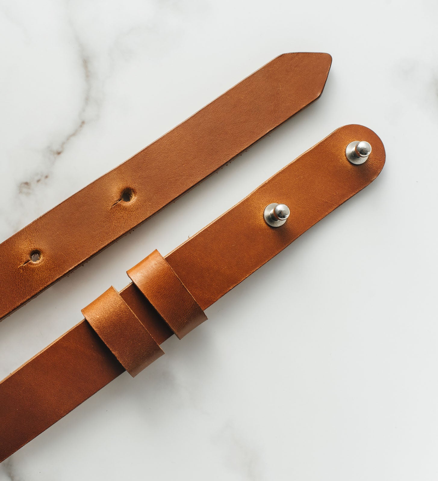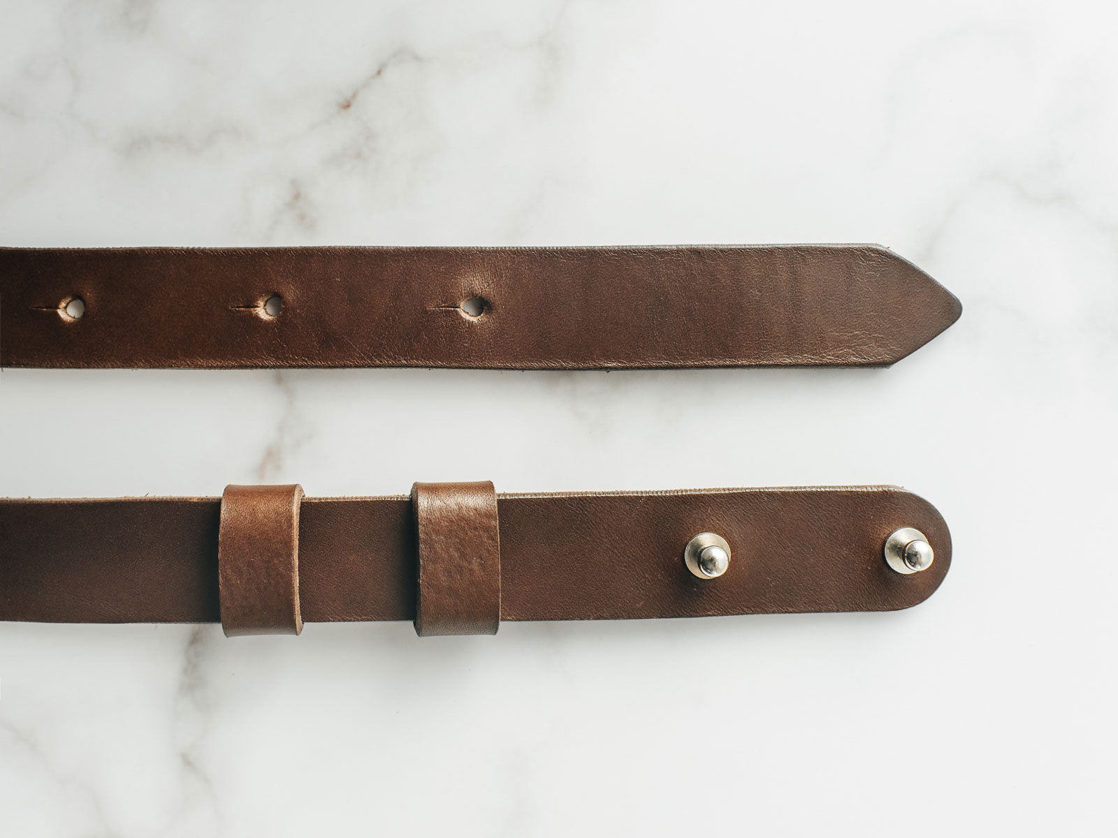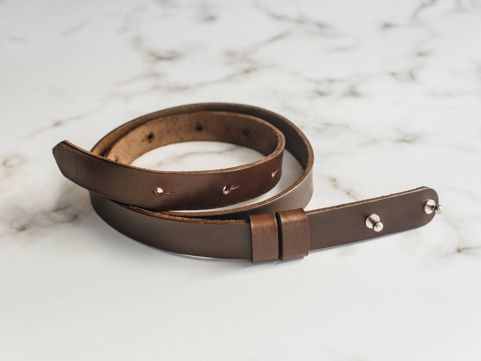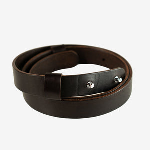 Виготовлений із цілісного шматка шкіри рослинного дублення товщиною 3.5–4 мм, ремінь має гладку поверхню, приємну фактуру й благородний природний блиск. Цей тип шкіри з часом розкриває свій характер, набуваючи індивідуальної патини. Краї ременя ретельно заполіровані без прошивки, що підкреслює мінімалістичний дизайн і підвищує довговічність, запобігаючи розшаруванню.