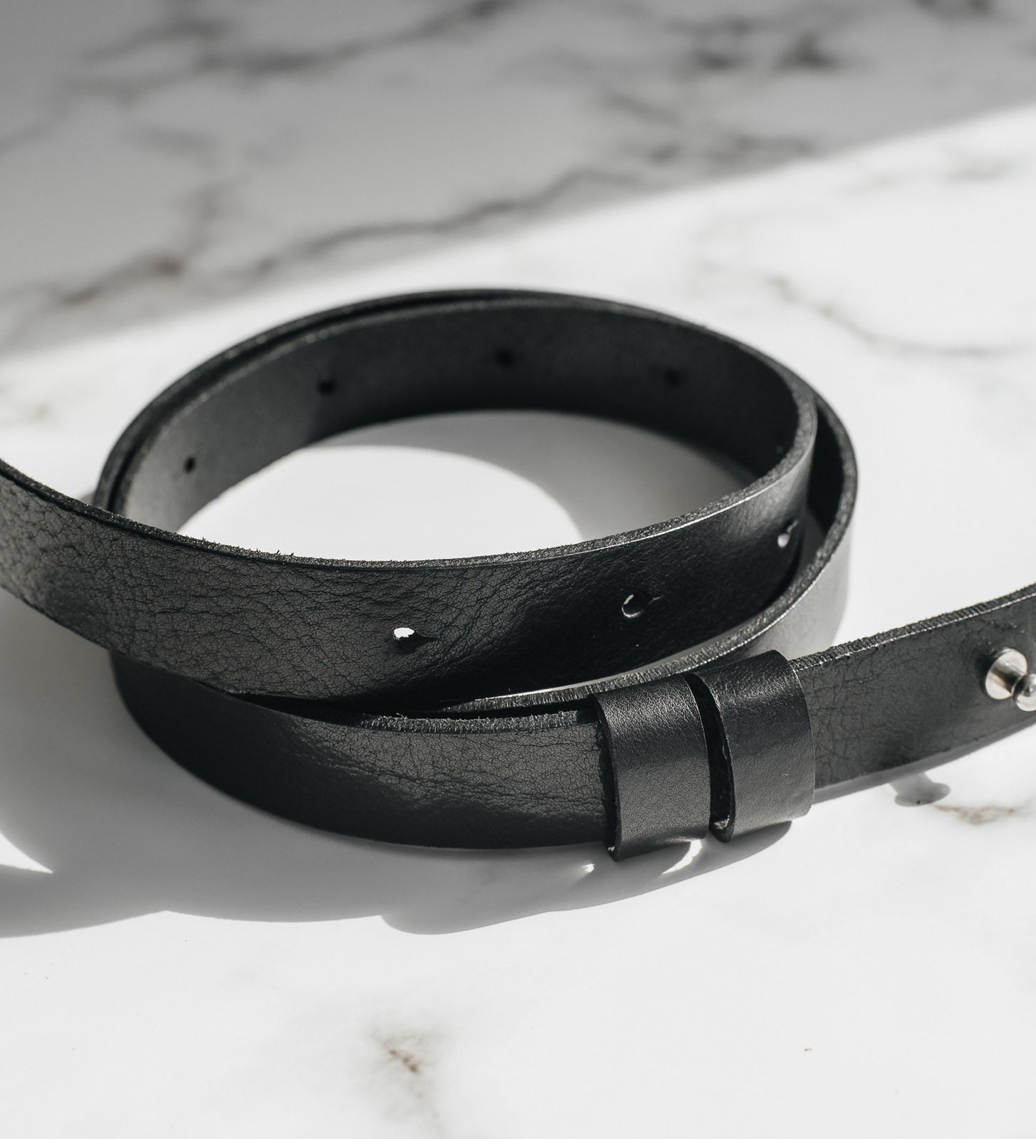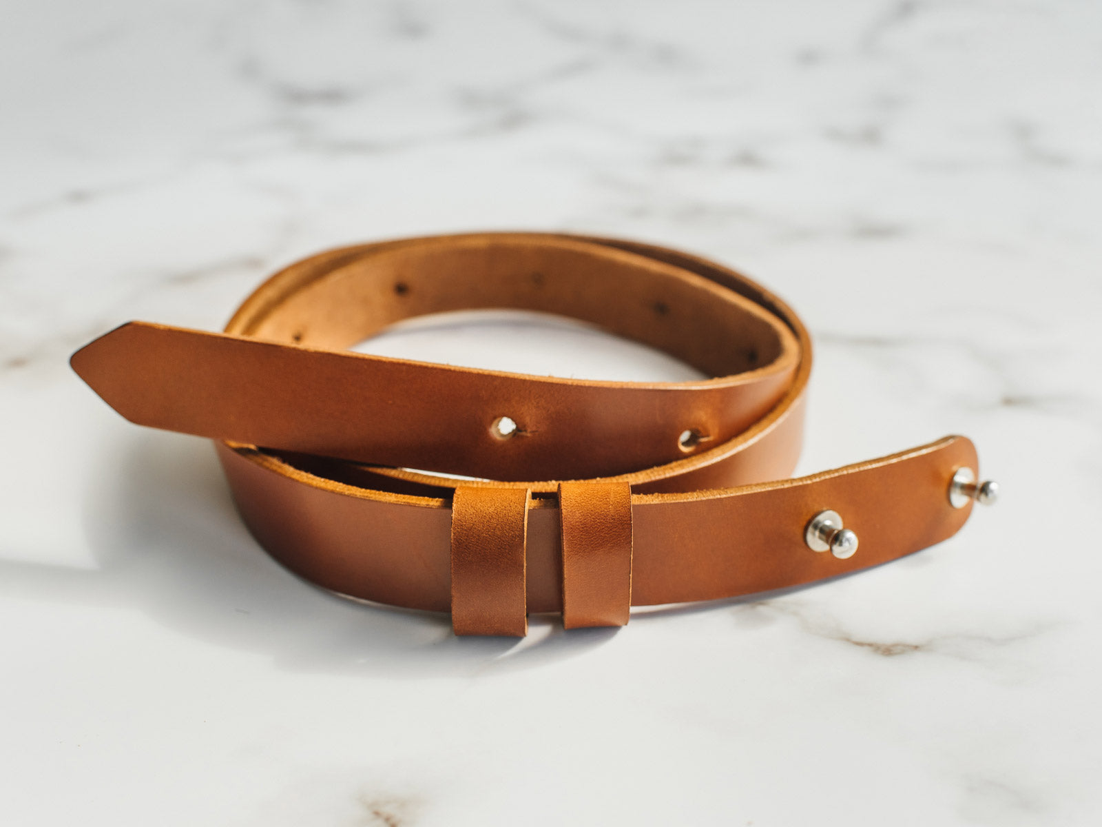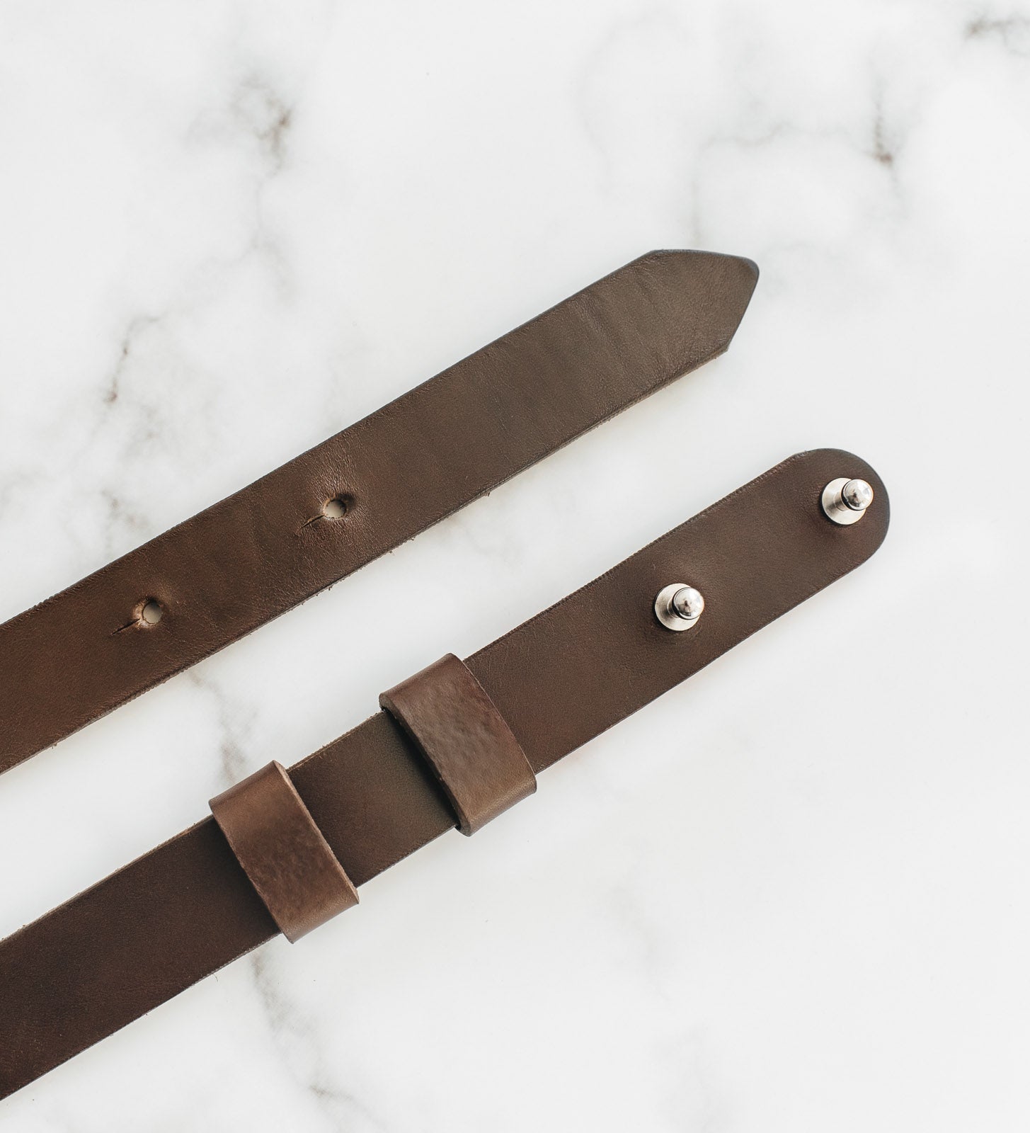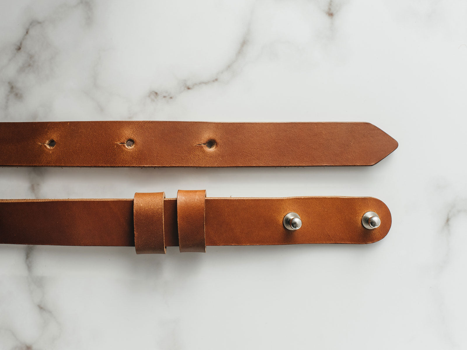 Виготовлений із цілісного шматка шкіри рослинного дублення товщиною 3.5–4 мм, ремінь має гладку поверхню, приємну фактуру й благородний природний блиск. Цей тип шкіри з часом розкриває свій характер, набуваючи індивідуальної патини. Краї ременя ретельно заполіровані без прошивки, що підкреслює мінімалістичний дизайн і підвищує довговічність, запобігаючи розшаруванню.