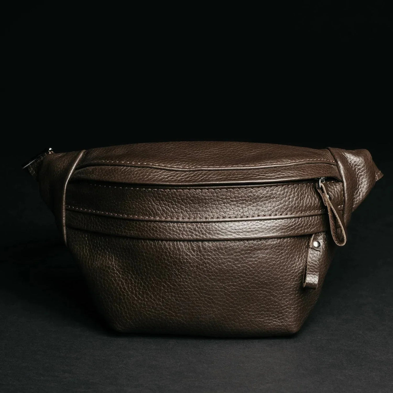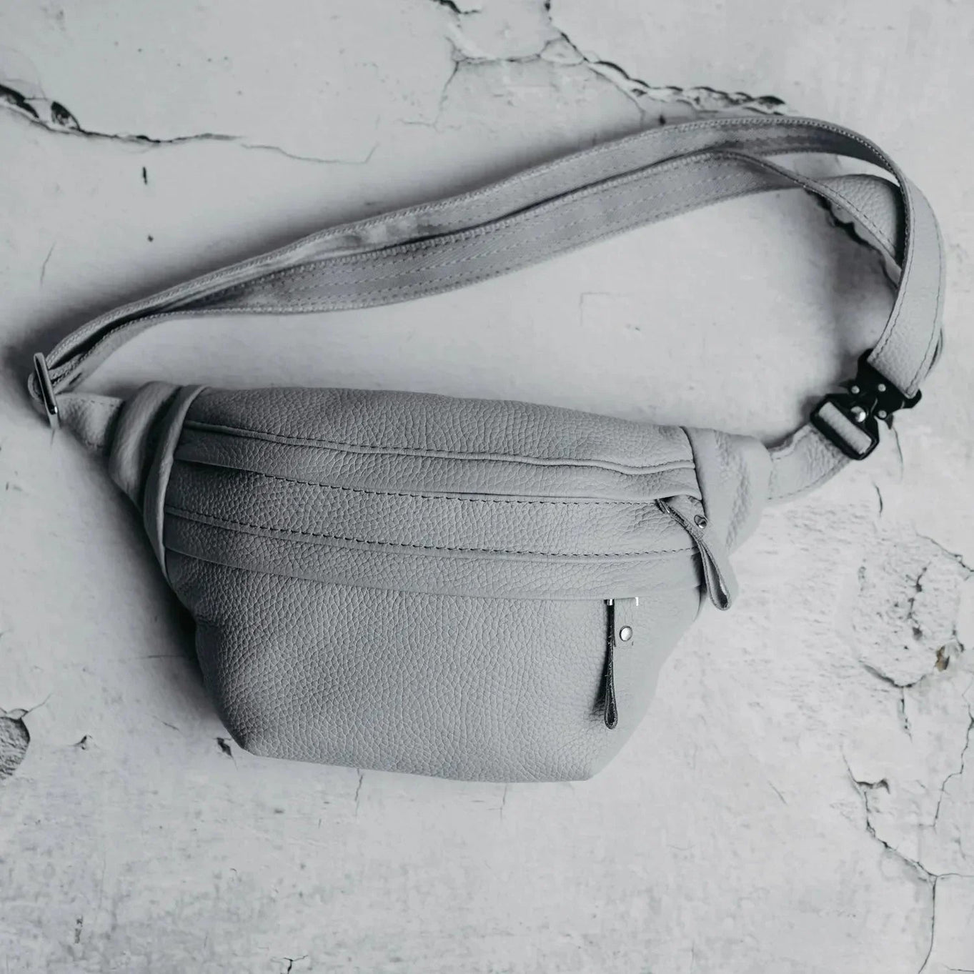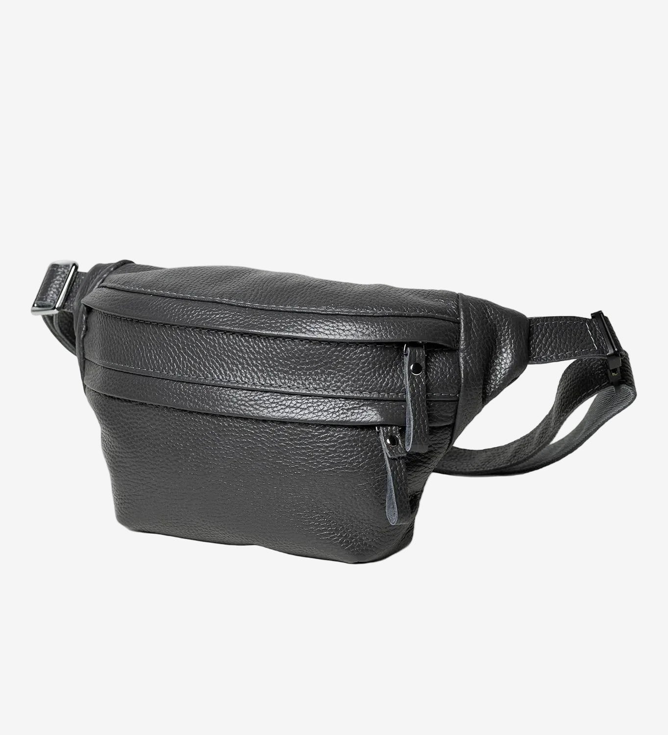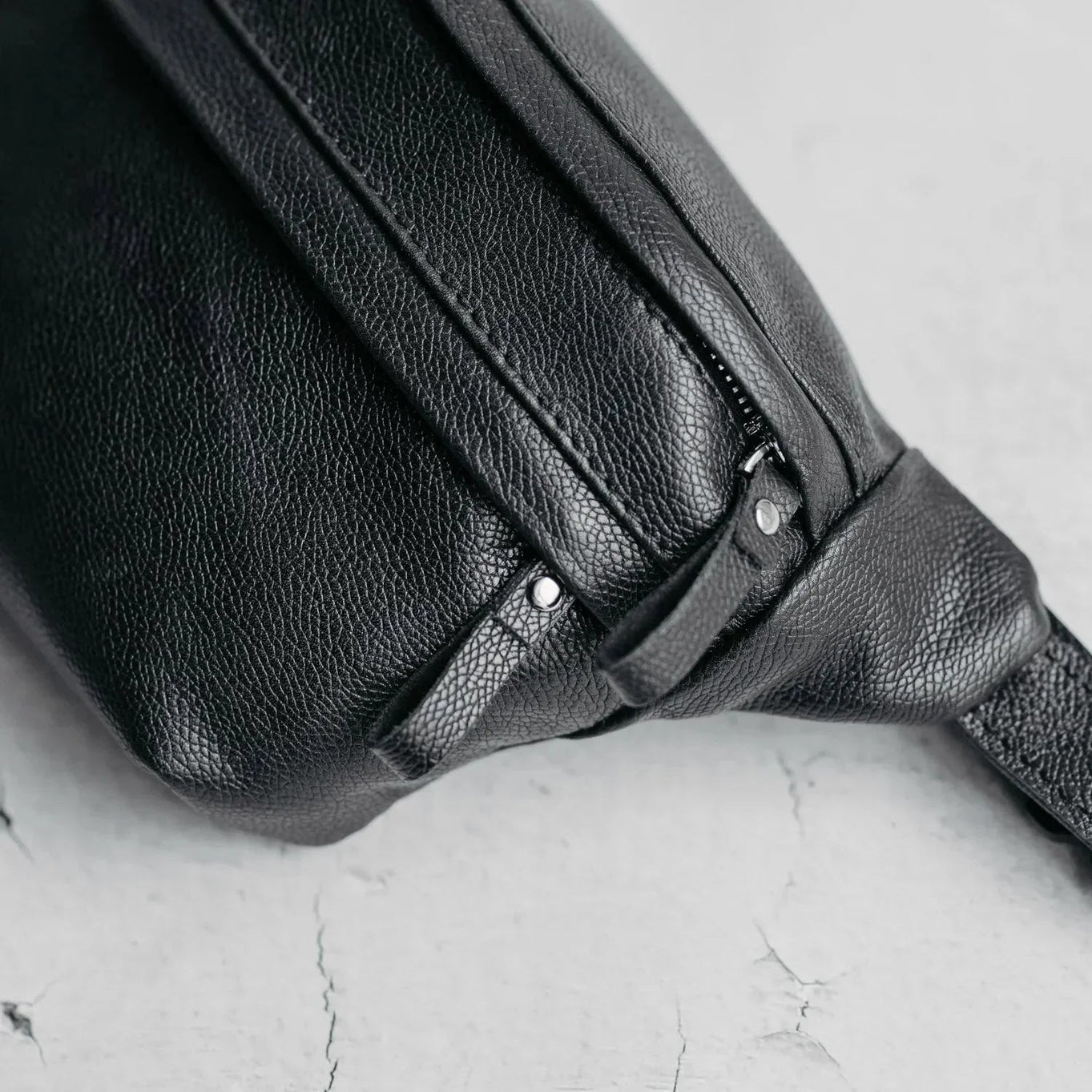 Leather Waist Bag with Zipper | Grainy Black - Skin and Skin