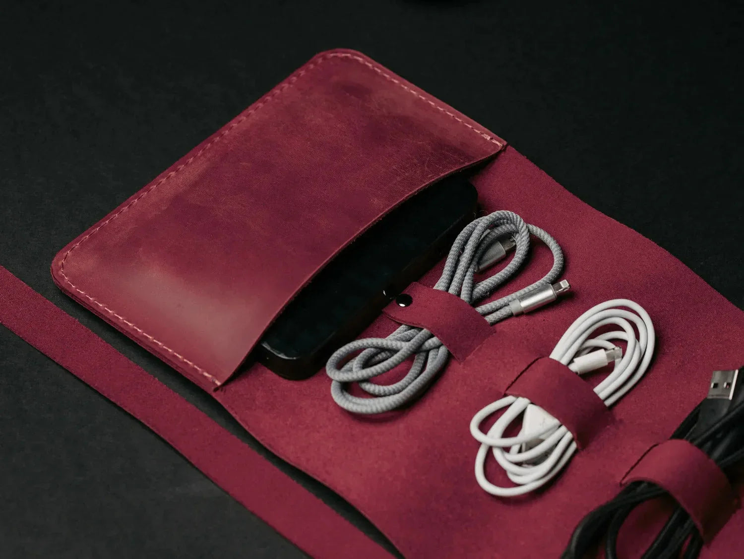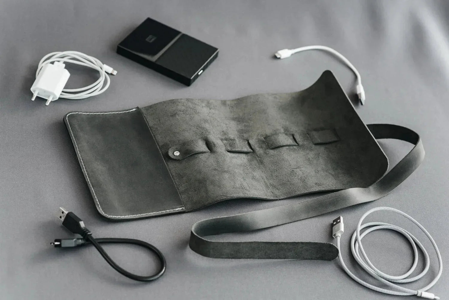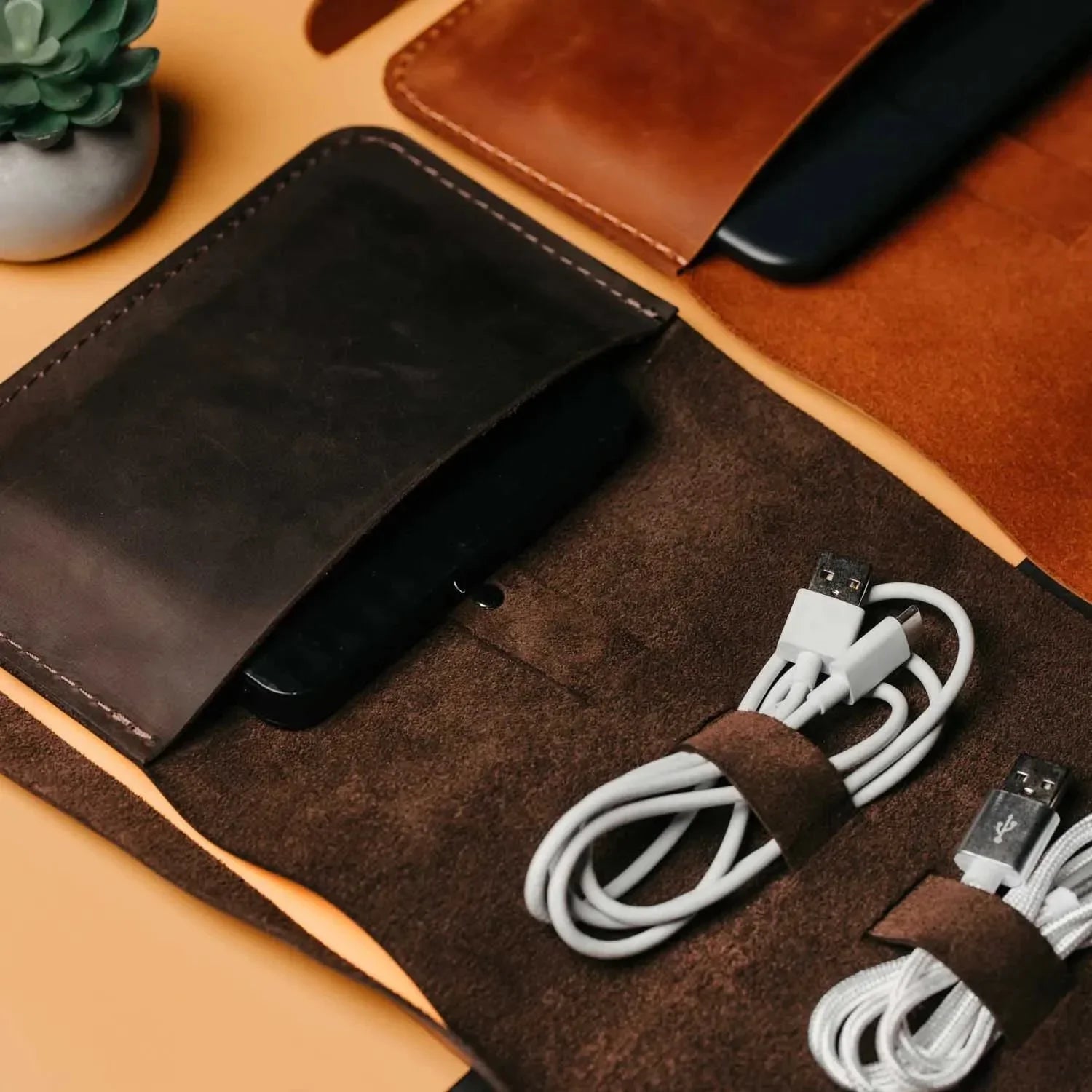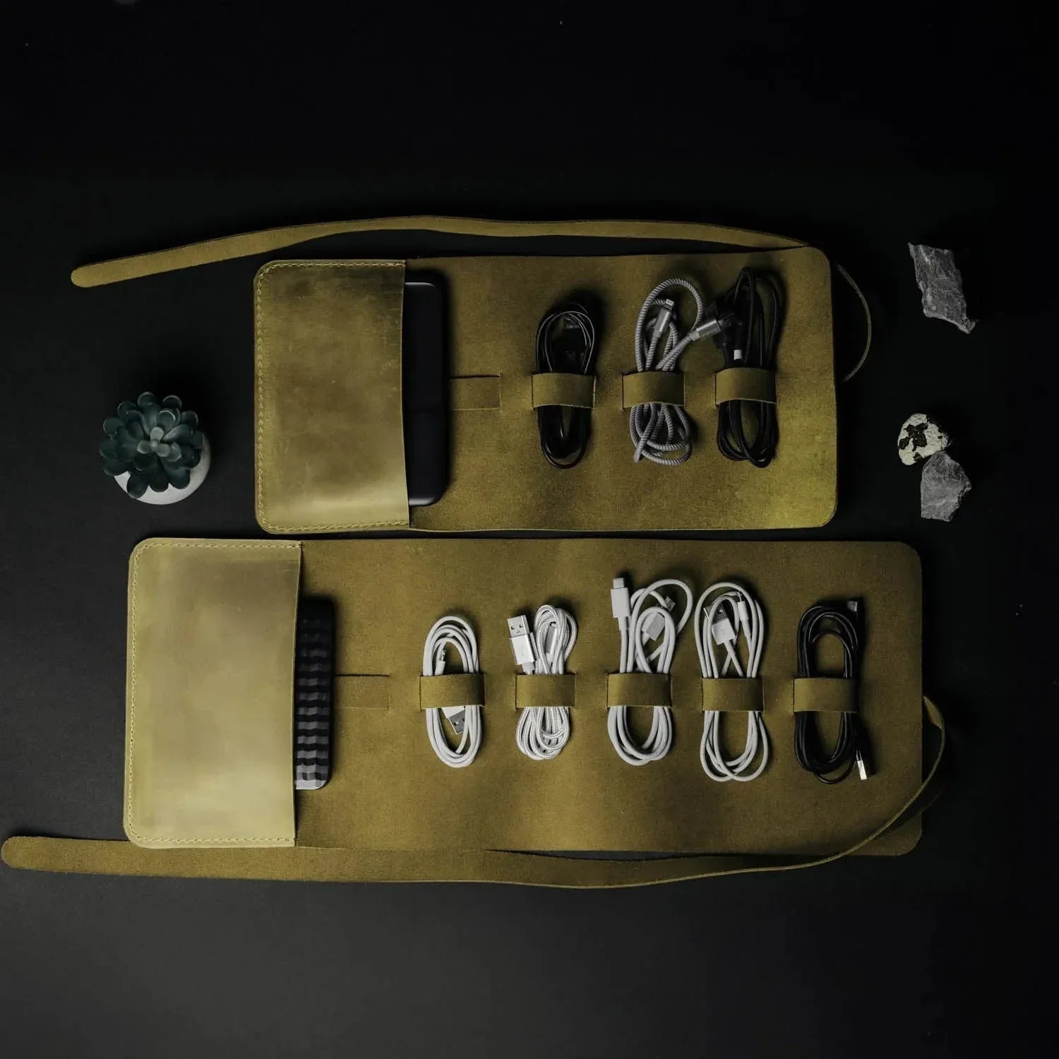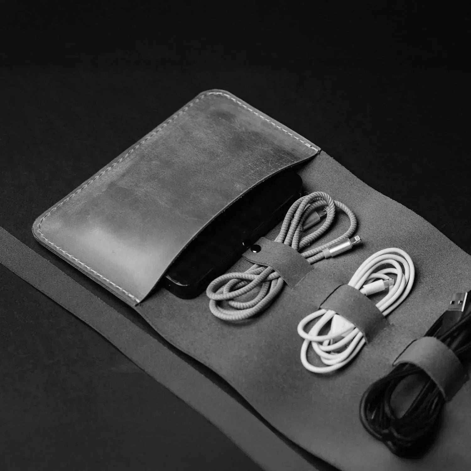 Втомилися від заплутаних кабелів і безладу у рюкзаку чи шухляді? Цей рол із натуральної шкіри Crazy Horse стане стильним і надійним способом зберігати зарядні дроти, навушники, USB-кабелі та дрібні аксесуари. Матова, вощена поверхня з вінтажним ефектом робить його не просто зручним, а й унікальним – з часом шкіра набуває патини та індивідуального характеру.