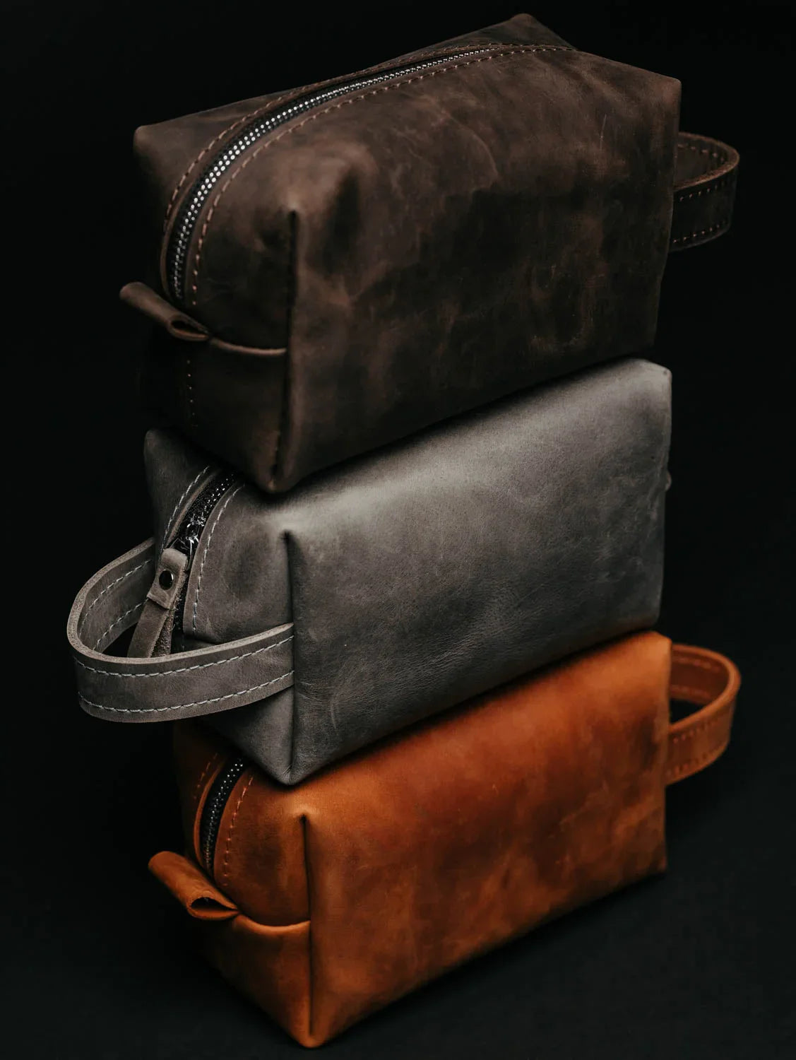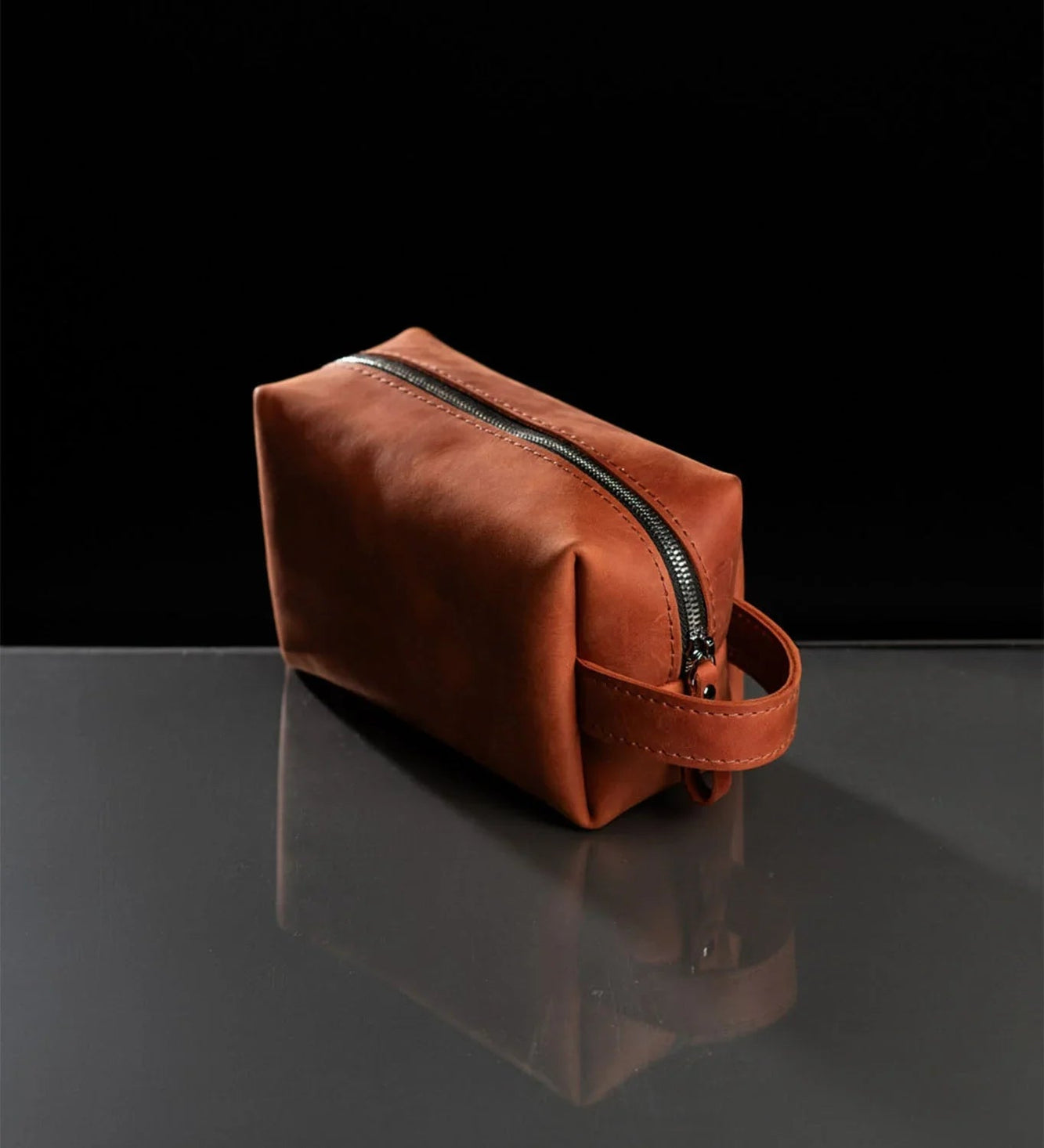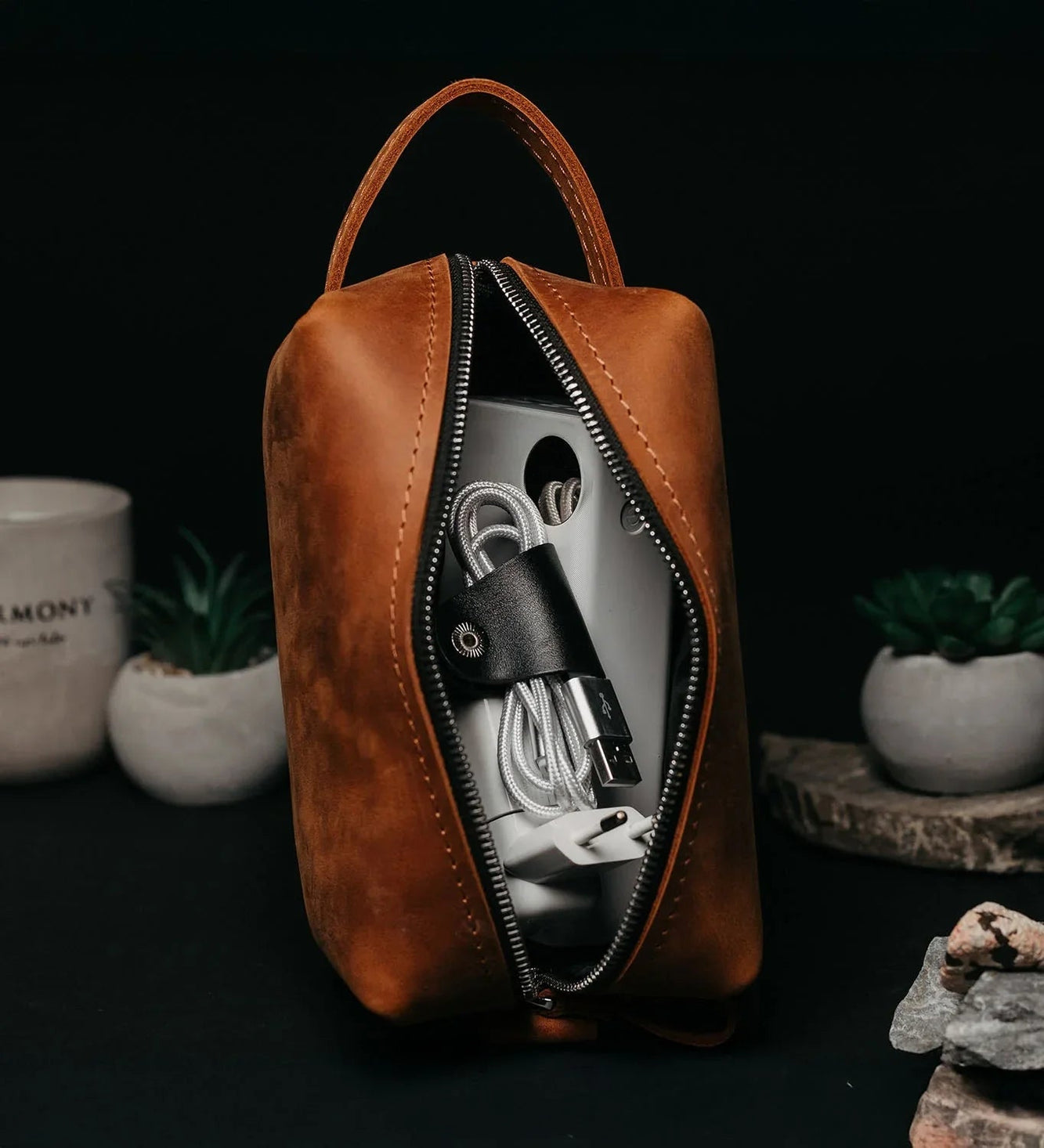 Забудьте про пластикові сумочки й безлад у валізі. Ця шкіряна Dopp Kit дозволяє компактно зберігати все необхідне – від зубної щітки та бритви до косметики чи аксесуарів для подорожей. Ідеально підходить тим, хто цінує порядок і мінімалізм.