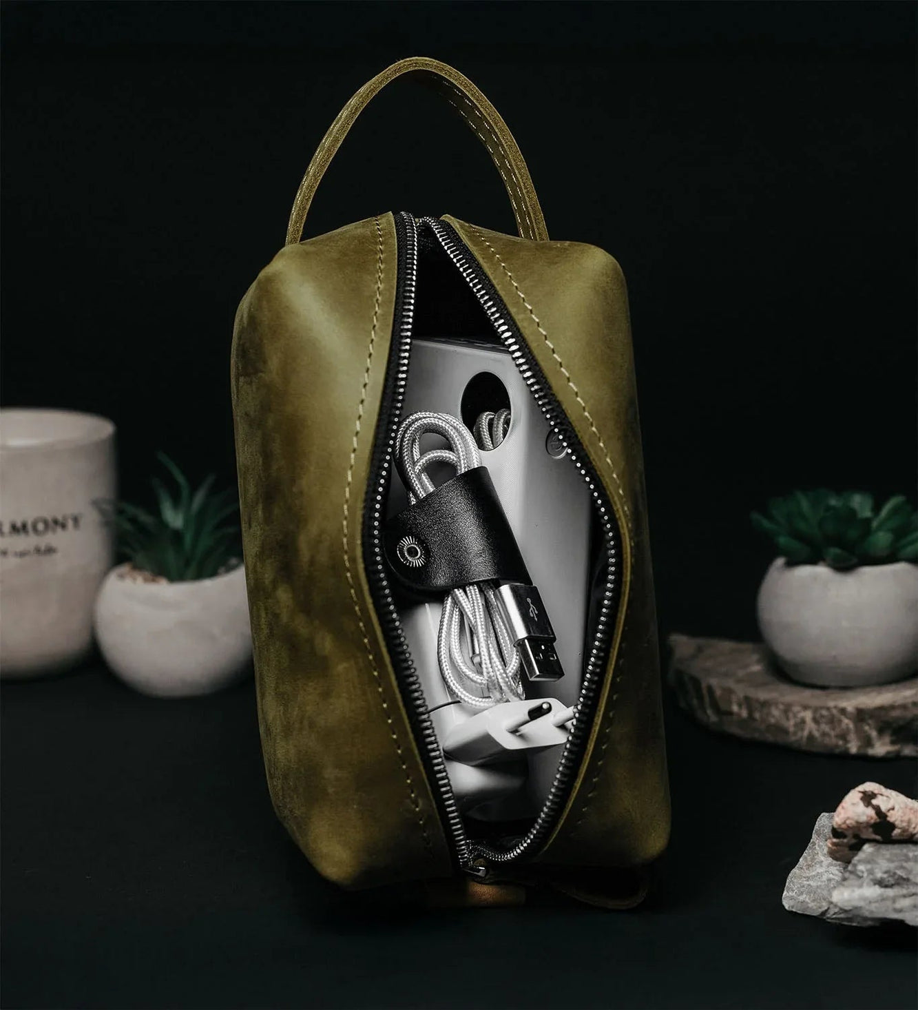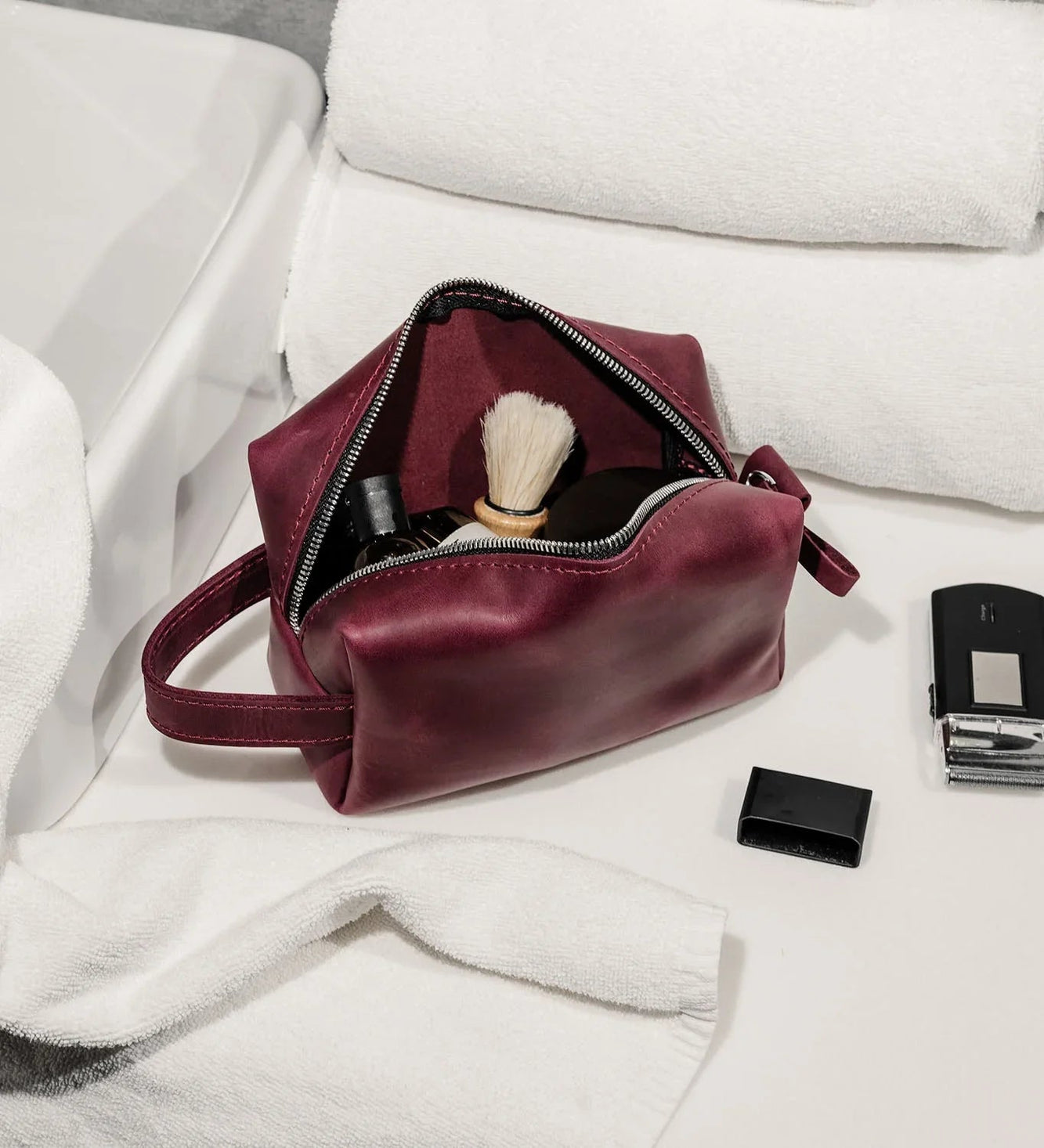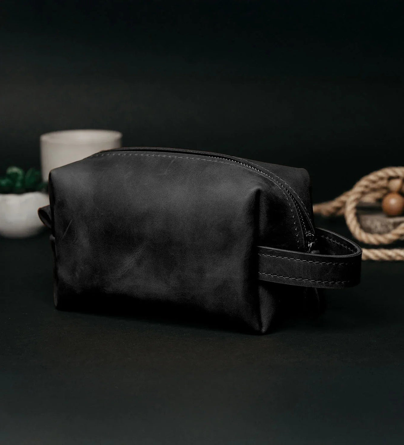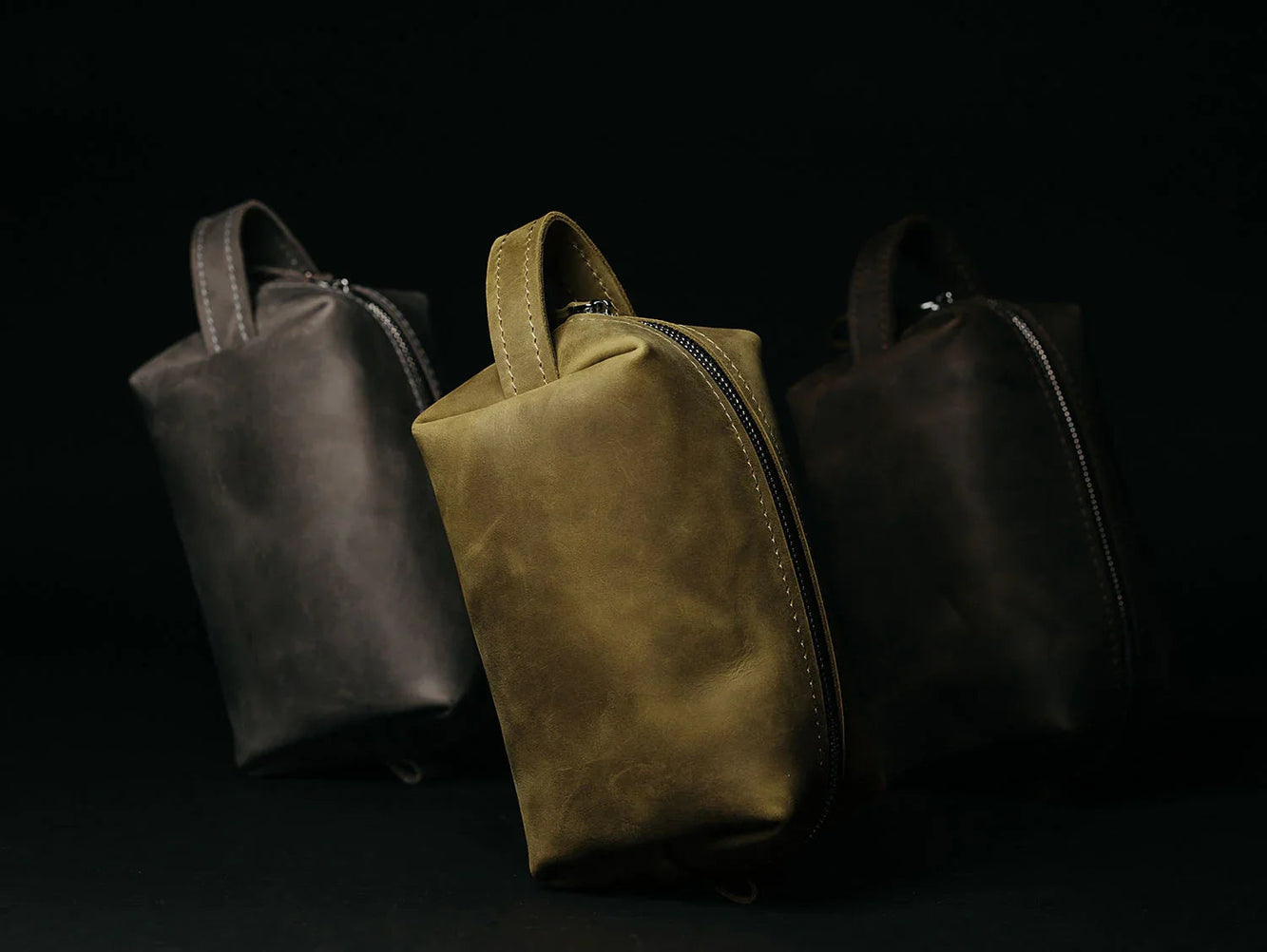 Забудьте про пластикові сумочки й безлад у валізі. Ця шкіряна Dopp Kit дозволяє компактно зберігати все необхідне – від зубної щітки та бритви до косметики чи аксесуарів для подорожей. Ідеально підходить тим, хто цінує порядок і мінімалізм.