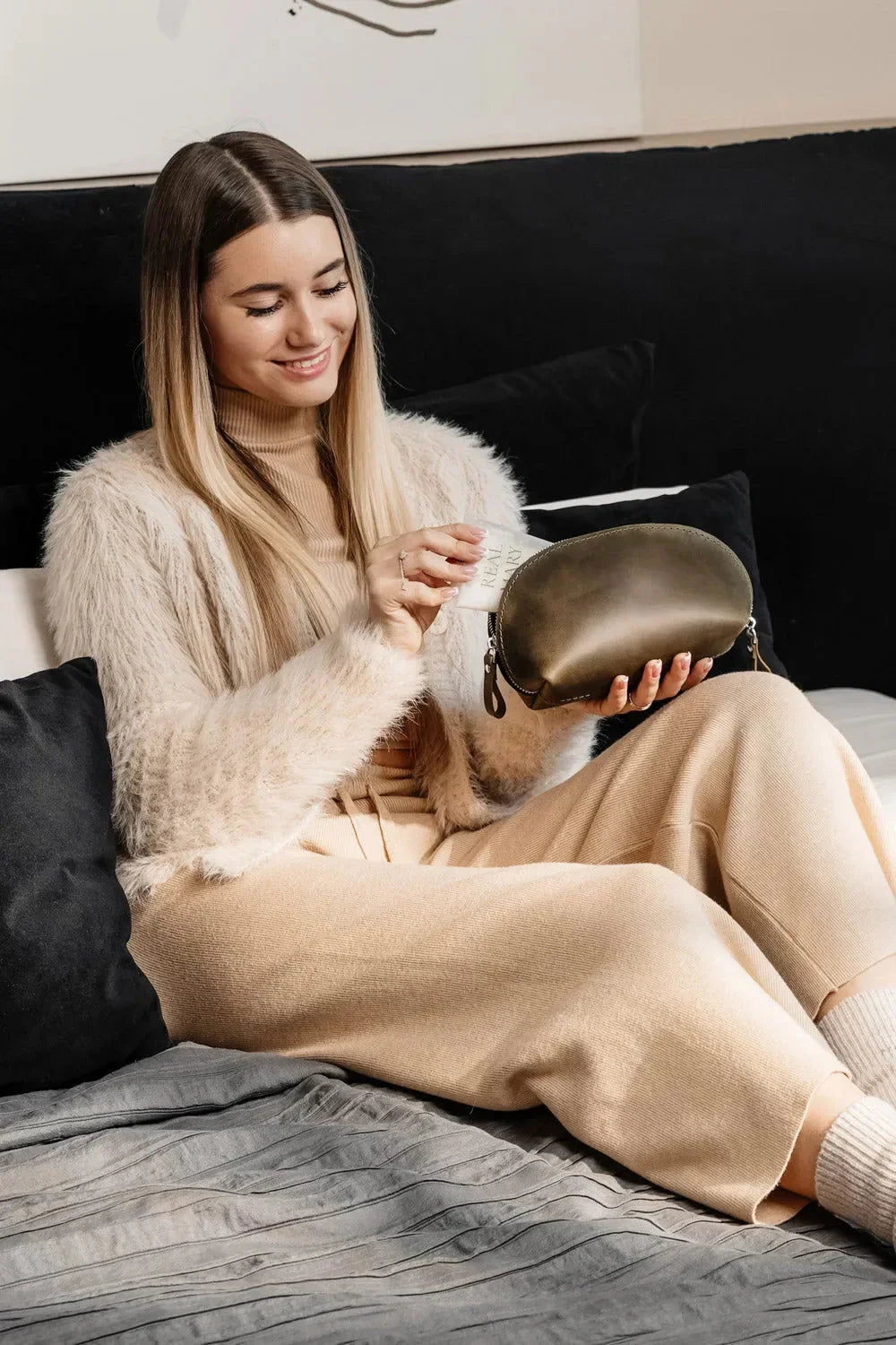Додайте трохи автентичності у свою рутину чи подорожі з цією ручної роботи косметичкою зі шкіри Crazy Horse. Матовий, вощений фініш і природна текстура створюють ефект благородного старіння, а водночас забезпечують витривалість і зручність у використанні. Ідеальний аксесуар для тих, хто цінує натуральні матеріали, простоту й стиль поза часом.