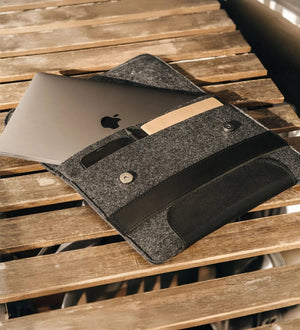 Leather & Wool MacBook Case | Smooth Black - Skin and Skin