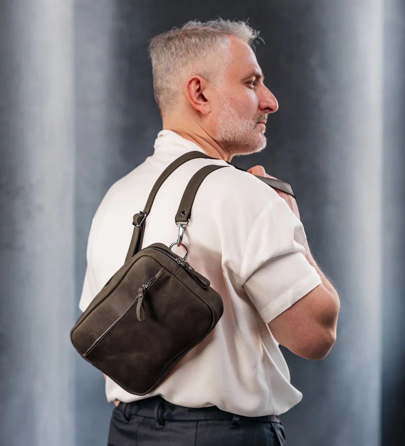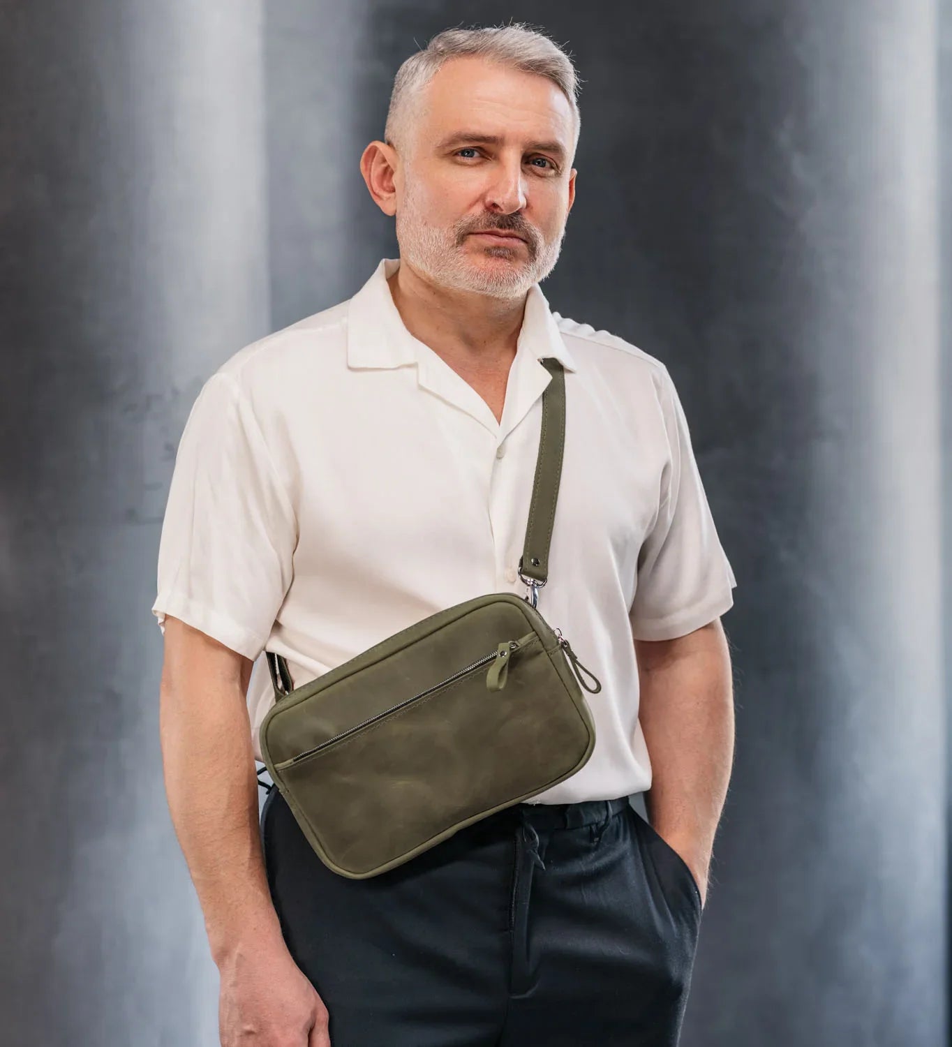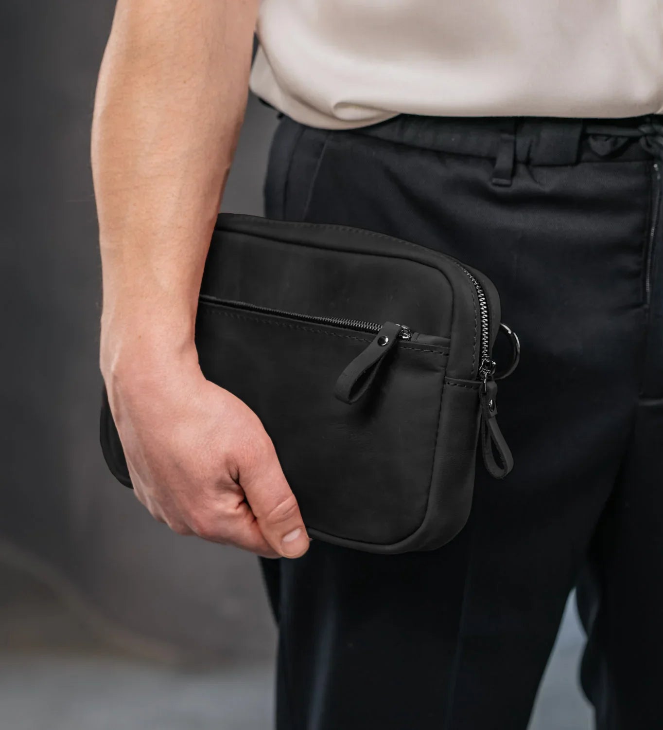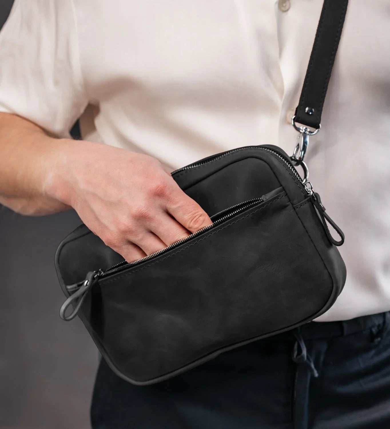 Поясна та сумка-кросбоді з матової вощеної шкіри – міцна, мінімалістична, унісекс.