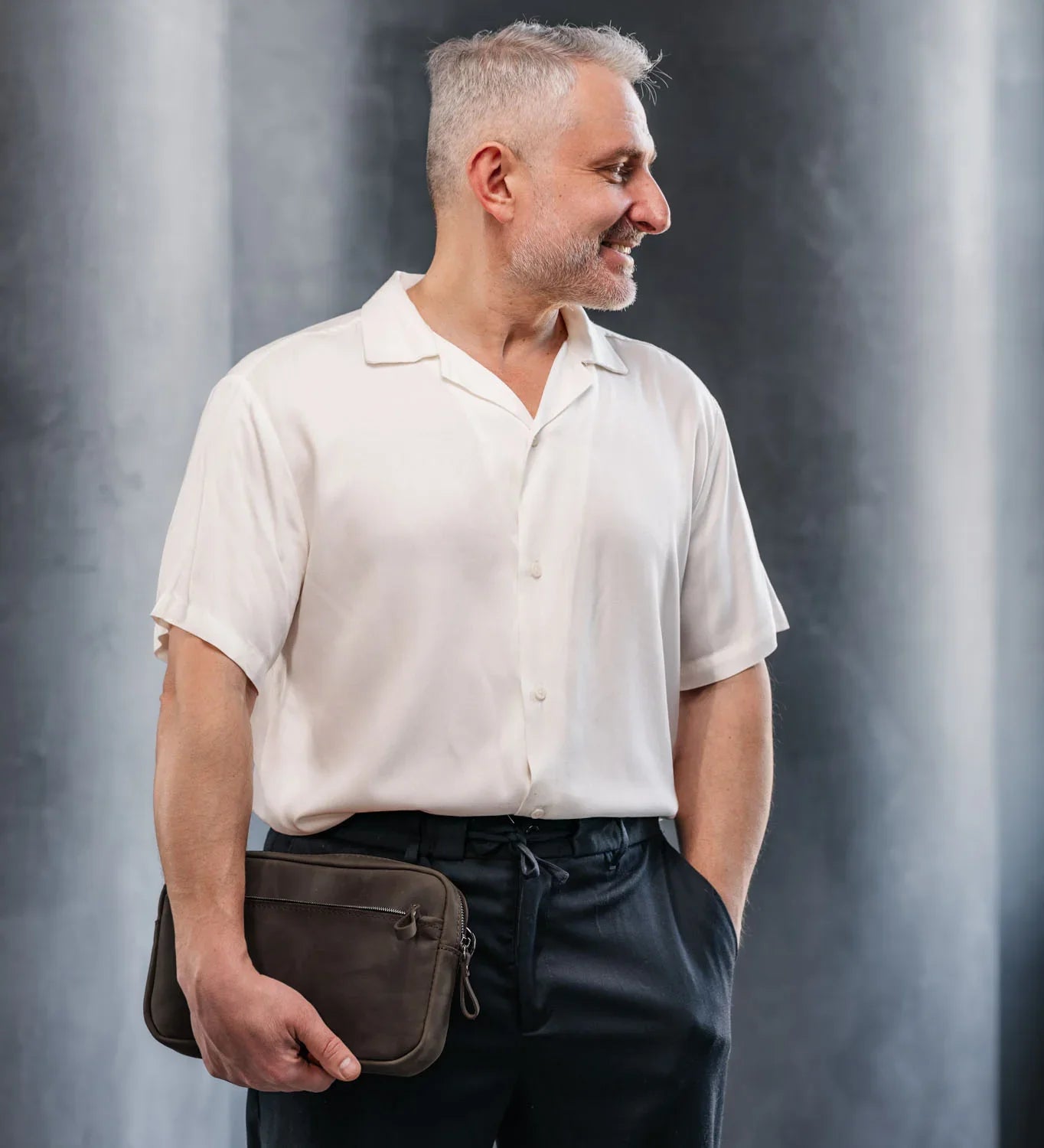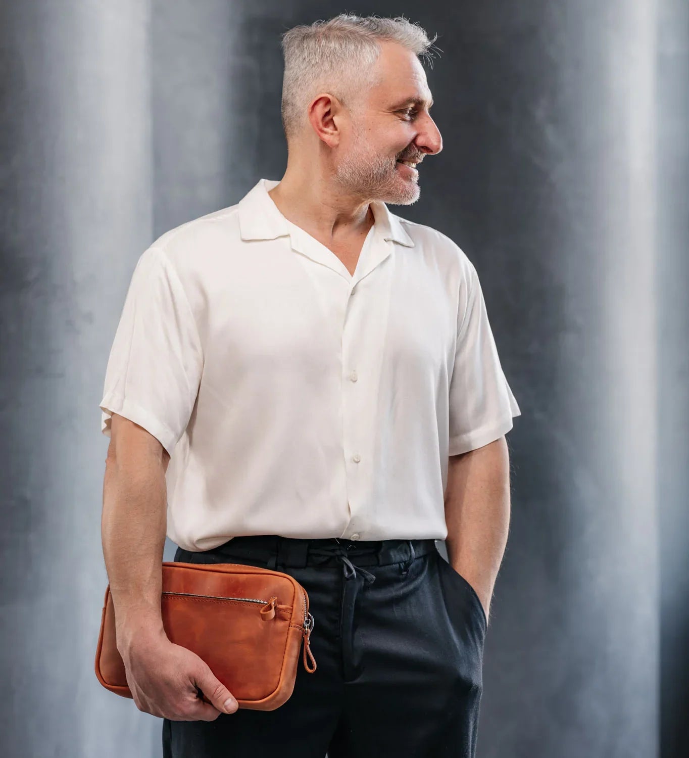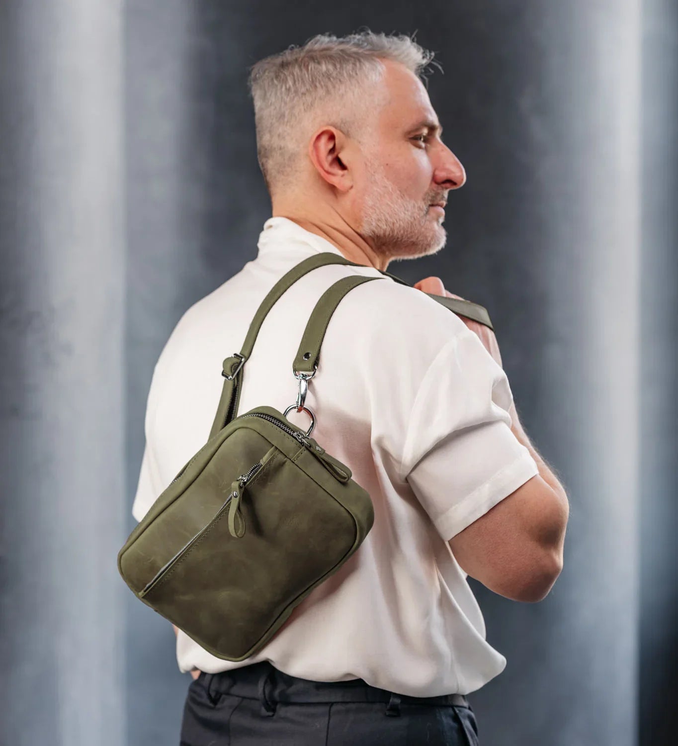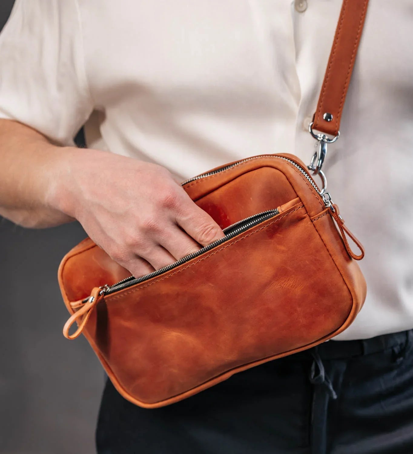 Поясна та сумка-кросбоді з матової вощеної шкіри – міцна, мінімалістична, унісекс.